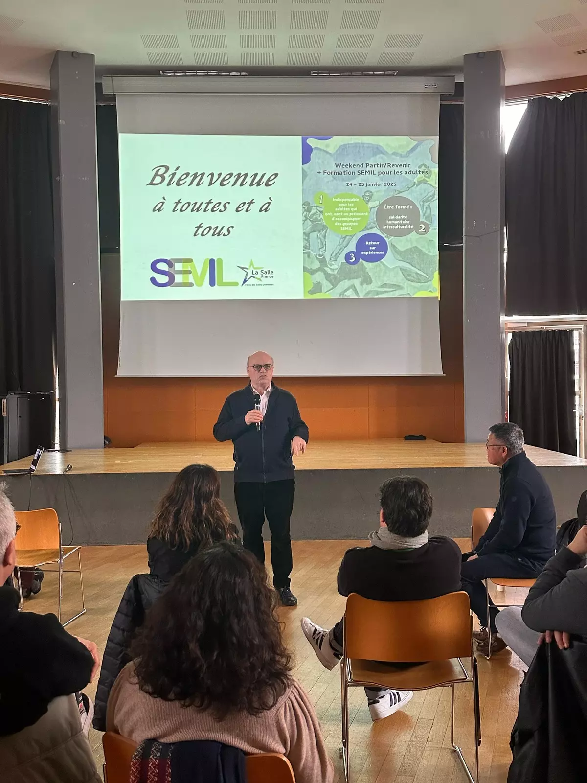 Fin janvier, 52 adultes venant de 16 établissements laSaliens se sont retrouvés, aux portes de Paris, à Issy-les-Moulineaux dès le vendredi soir pour un temps convivial, ponctué par des témoignages de 3 lyceéns (du groupe scolaire Lazaristes LaSalle à Lyon) et 4 adultes accompagnateurs (du lycée Saint-Jean-Baptiste de la salle de Rouen) : ils ont respectivement réalisé un projet solidaire en Espagne et au Togo l’été 2024.