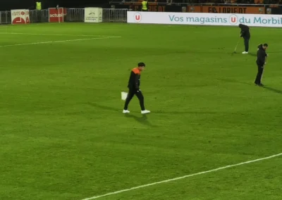 En effet, Paul Trolez, en BTS Aménagements Paysagers et apprenti de l’entreprise Sportingsols, est chargé de l’entretien de la pelouse du stade et œuvrait à la mi-temps.