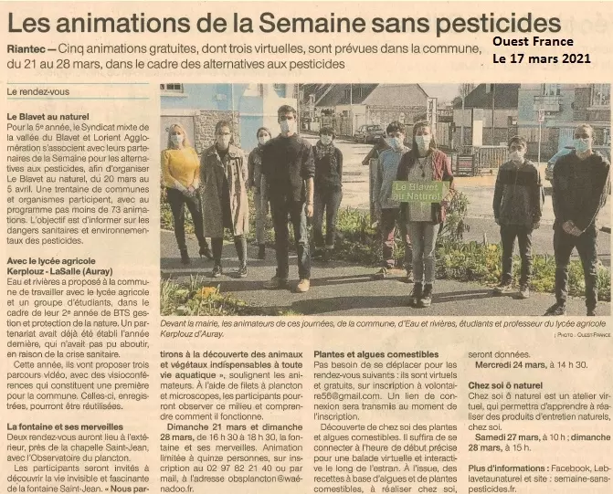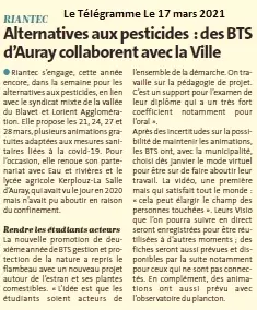 Alternatives aux pesticides : des BTS d’Auray collaborent avec la Ville (1 article Ouest-France + 1 article Le Télégramme)