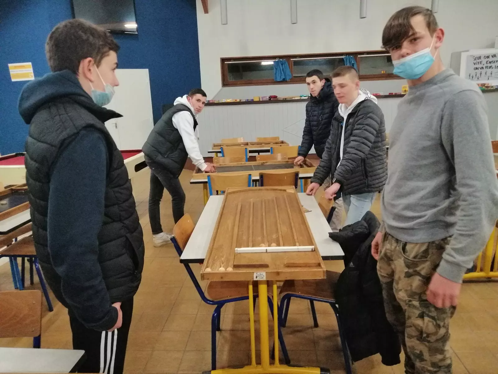 Les BTS AP 1 ont retrouvé leur ancien internat afin de proposer une animation jeux de bois aux internes. Axel, Erwan, Mathis et Antonin ont fait découvrir d’anciens jeux de bois au foyer, le mercredi 9 mars en soirée, découverte accompagnée d’un petit concours avec de petits lots en jeu.