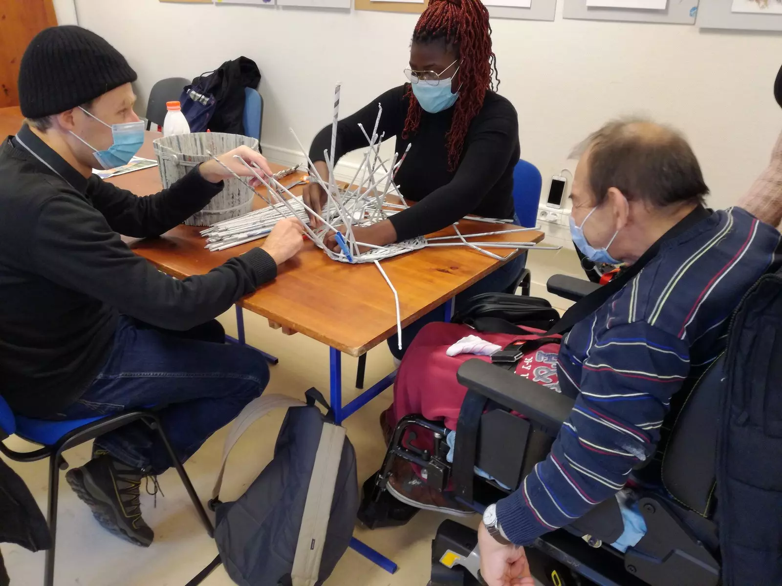 « J’ai apprécié le contact avec les personnes, communiquer, apprendre et animer l’atelier même si au départ j’avais un peu peur » « On a plutôt bien réussi à gérer l’animation, on a su s’adapter aux possibilités des personnes et au local ». « Ils étaient contents et nous ont bien remerciés ». « Personne ne se jugeait, chacun était compréhensif », « on a passé un bon moment mais c’est passé vite : on n’a pas eu le temps de tout faire », « l’ambiance était chouette et on a été vite mis à l’aise », « on se sentait utiles », « j’ai appris sur l’animation, l’accompagnement et les personnes en situation de handicap », « j’ai appris à être plus patiente et à bien écouter, à dépasser le handicap, à faire confiance à des personnes au départ inconnues et à leur laisser leur autonomie », « d’abord timide, je me suis lancée et j’ai adoré faire l’animation avec les personnes », « prêts à recommencer ! »….