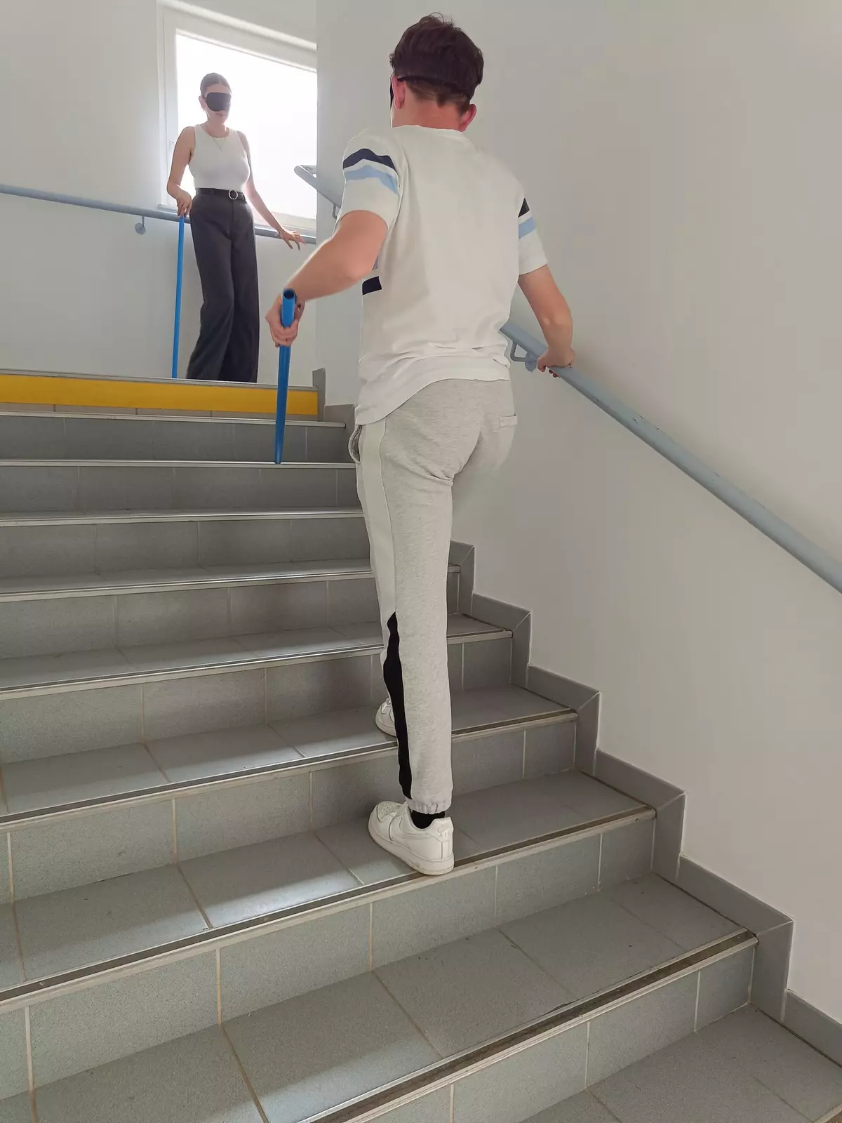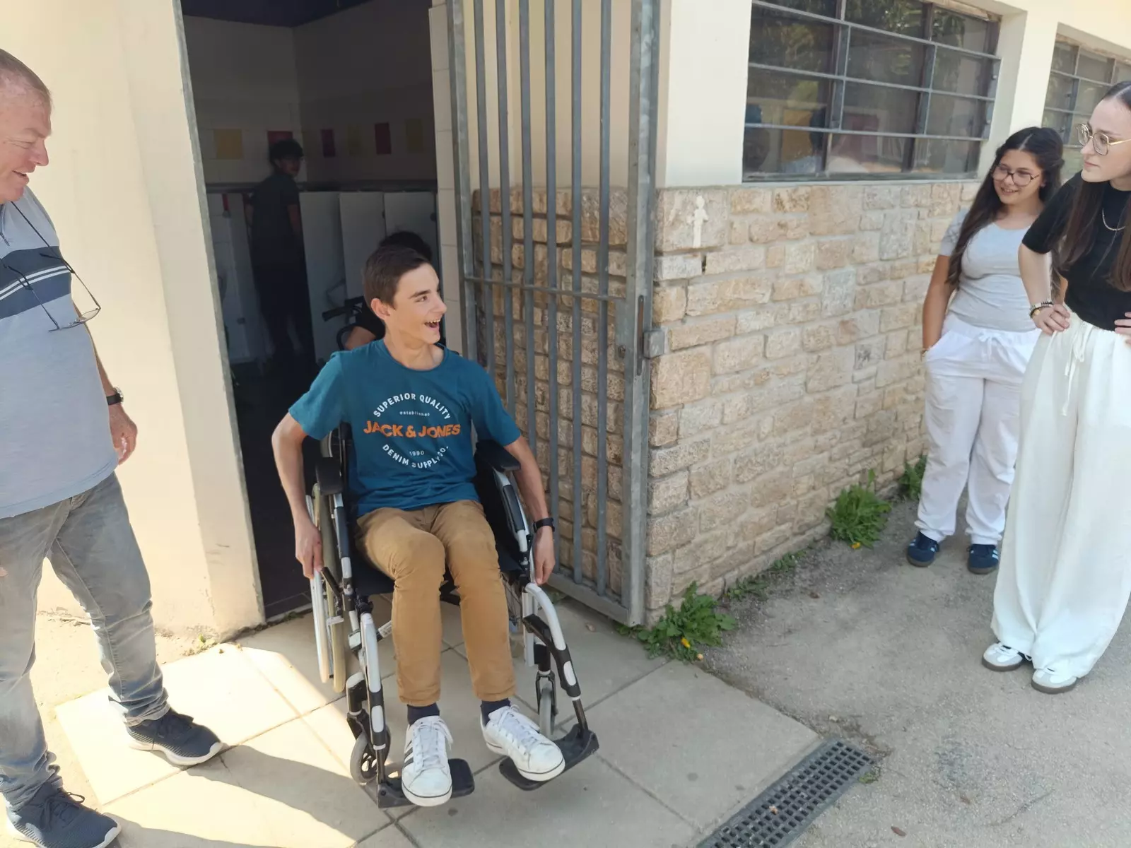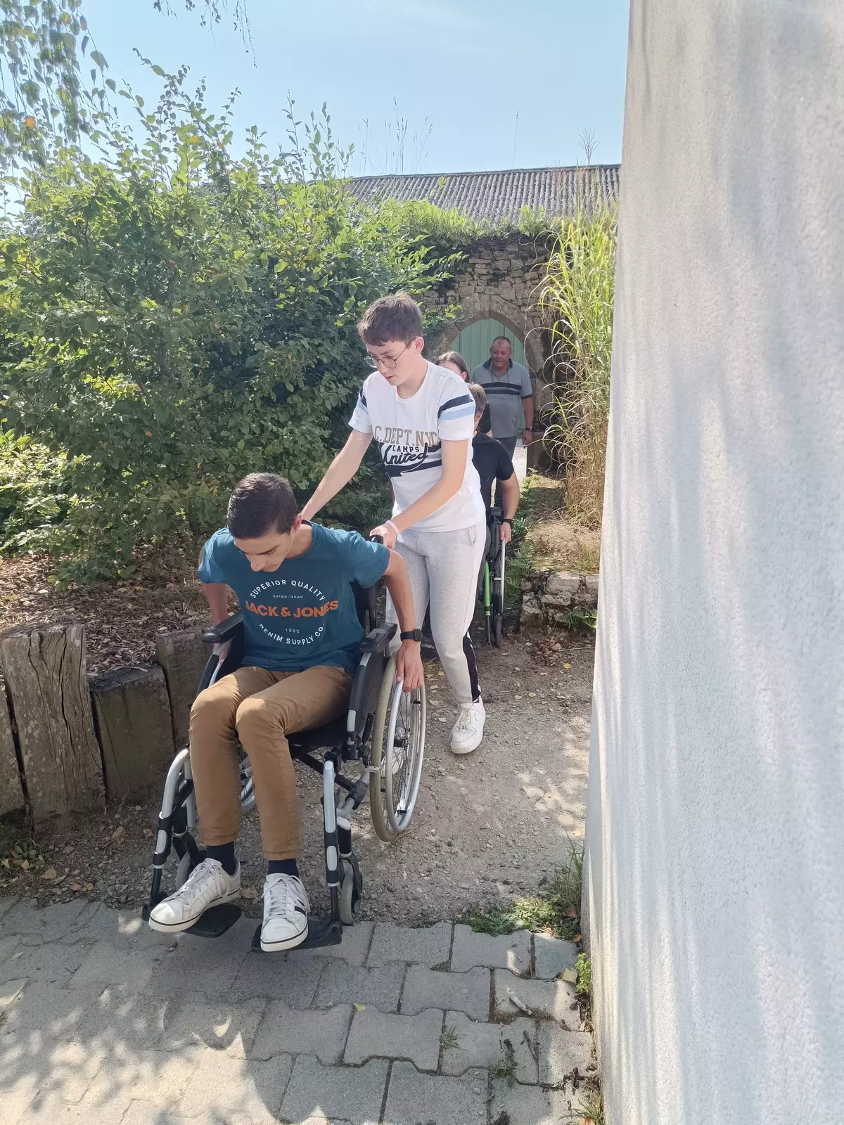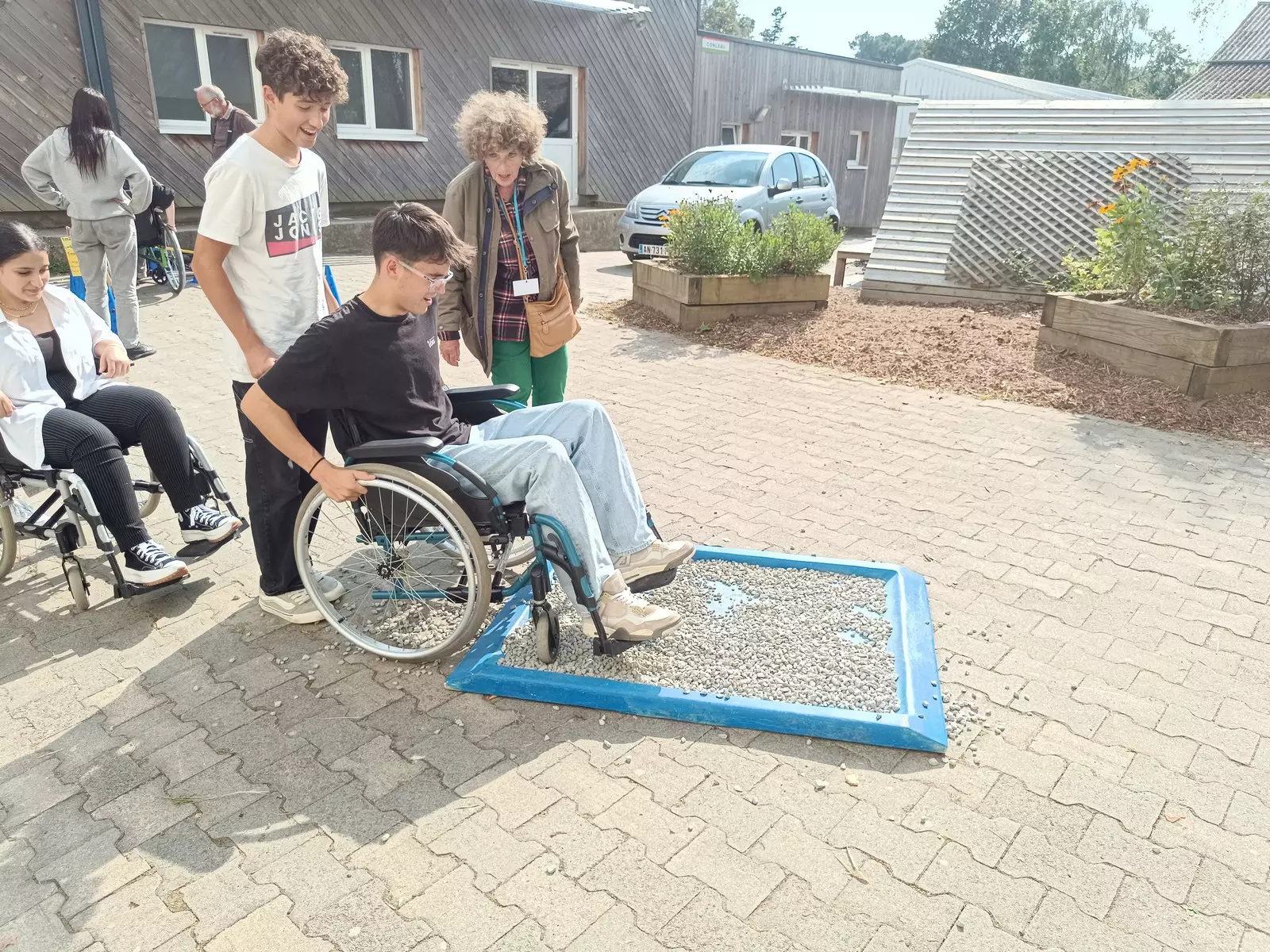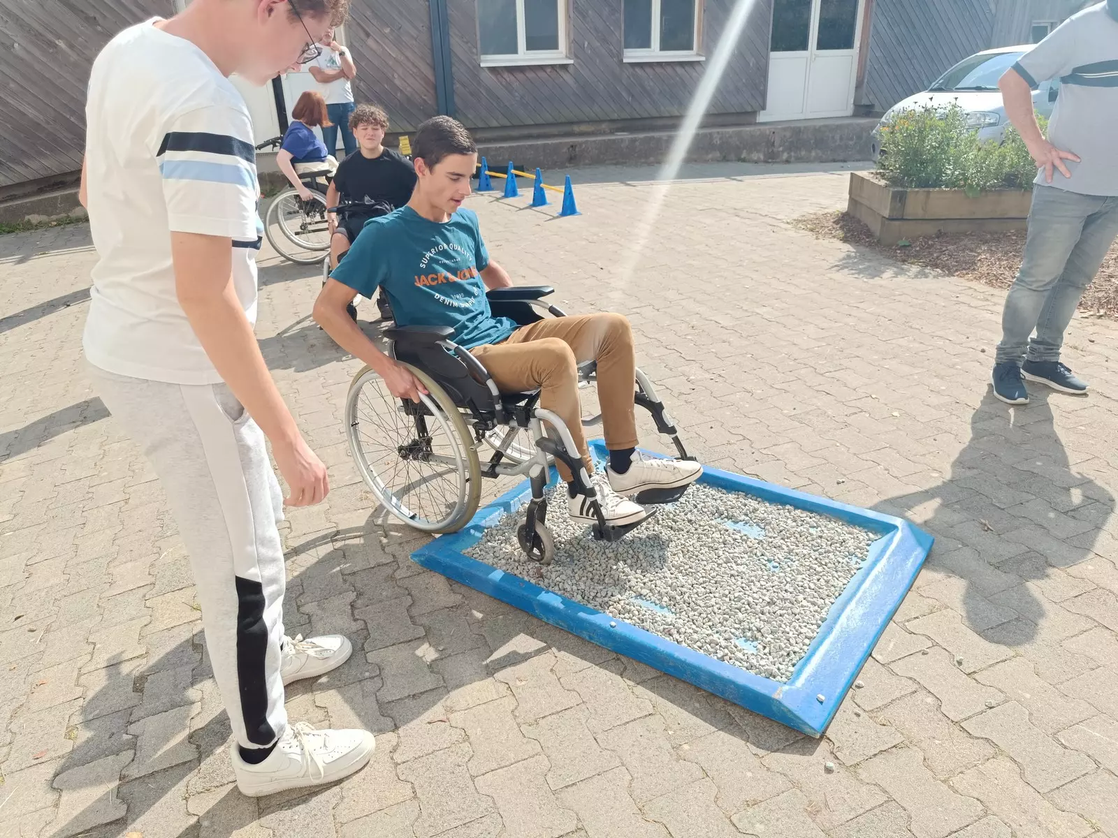 – En testant le fauteuil mécanique (en autonomie, en étant poussés ou en poussant une camarade en fauteuil),
