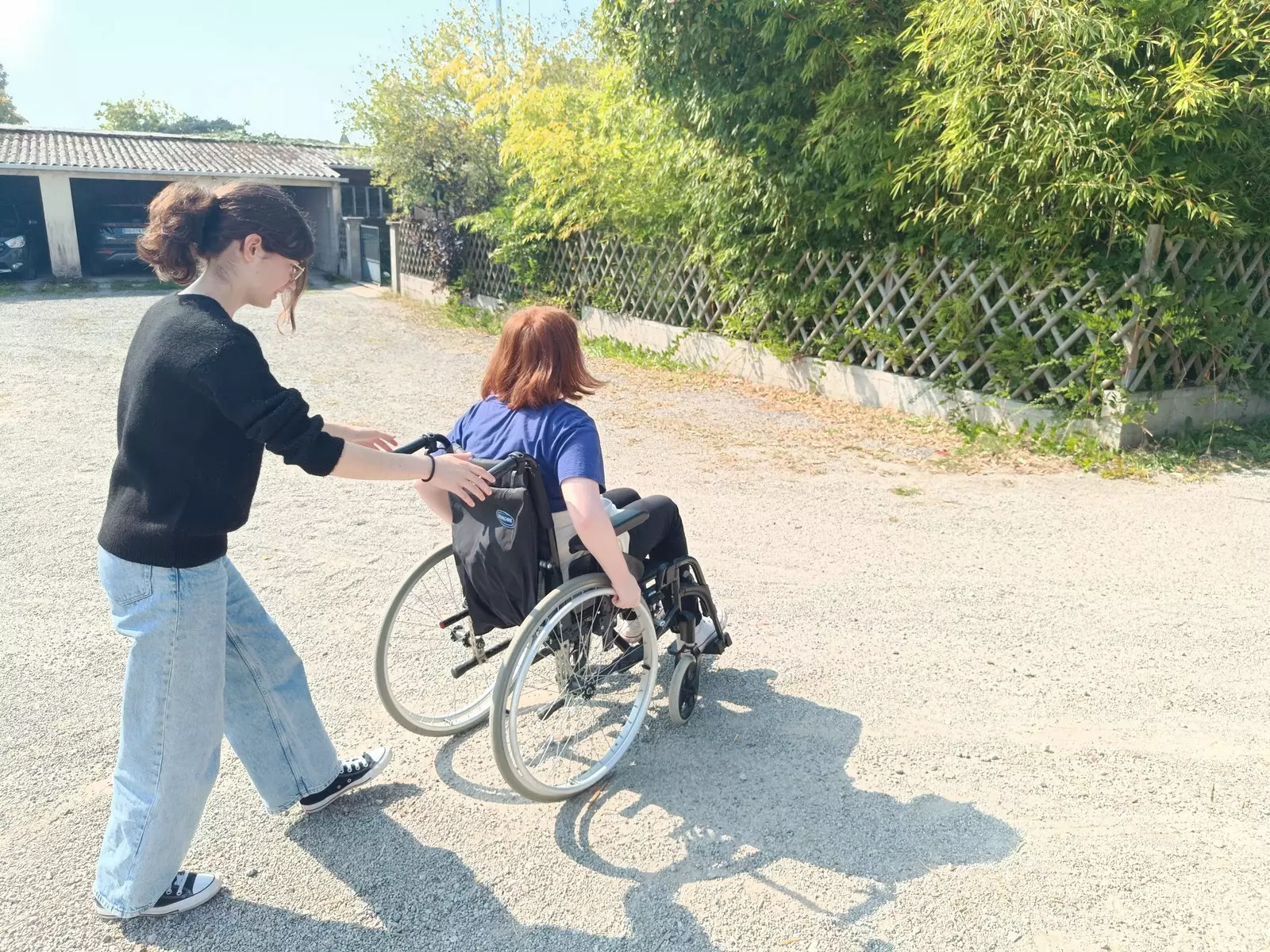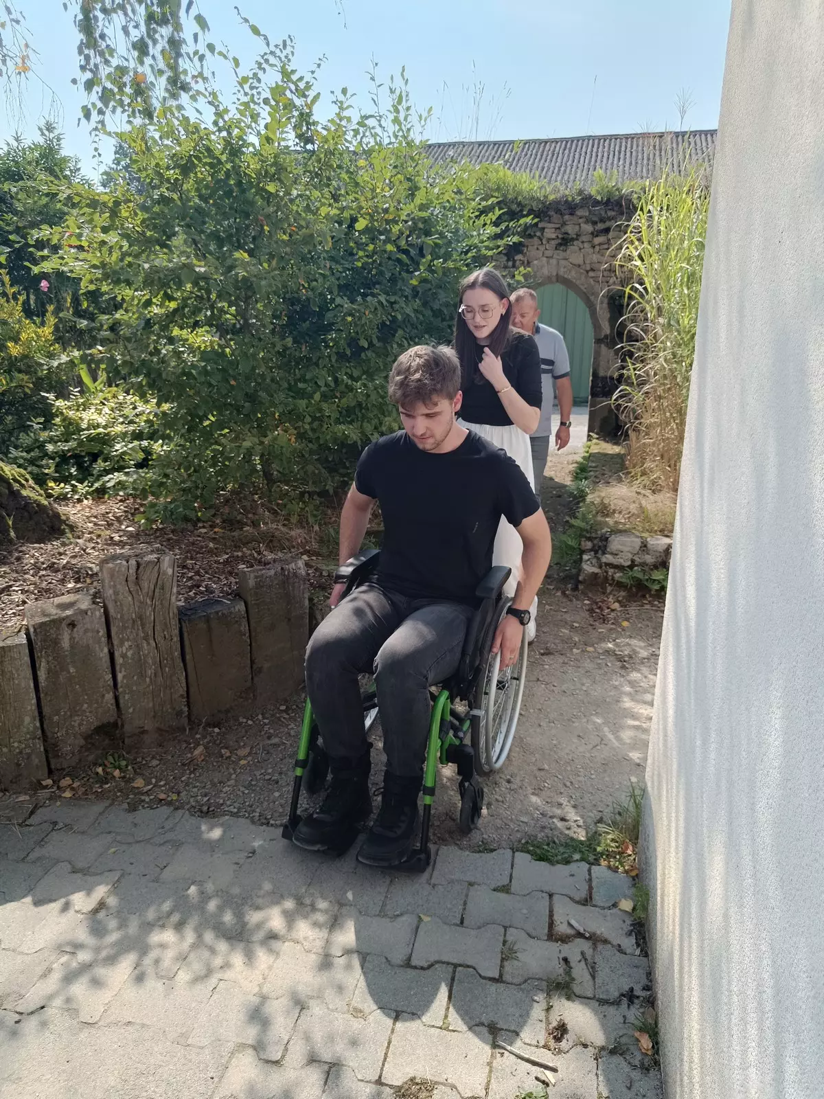 « Bien compliqué de se déplacer en fauteuil sur les graviers ! » « et aussi dans les passages étroits ou dans les pentes » « et pourtant c’est bien commode pour la personne qui ne peut pas marcher ! », « c’est vrai, mais moi je ne suis pas rassurée quand assise dans le fauteuil on me pousse sans me prévenir ! »