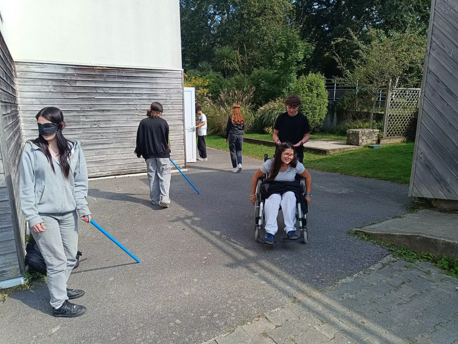 Les lycéens de la classe de Terminale CAP SAPVER (Service Aux Personnes et Vente En Milieu Rural) du lycée KERPLOUZ-LASALLE ont appréhendé la situation de handicap au travers de 3 ateliers :