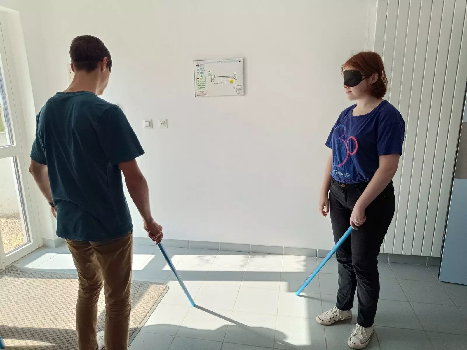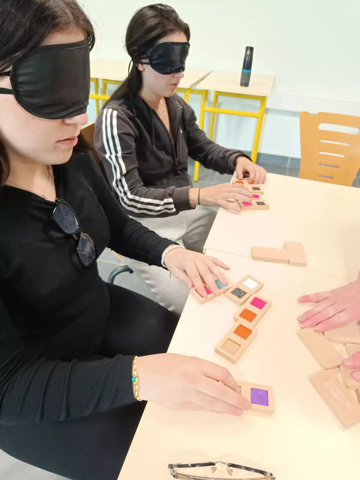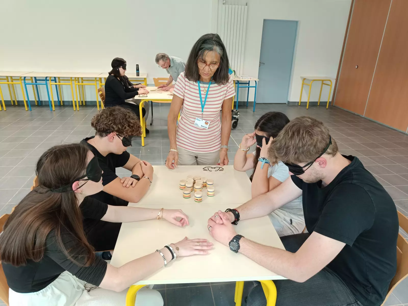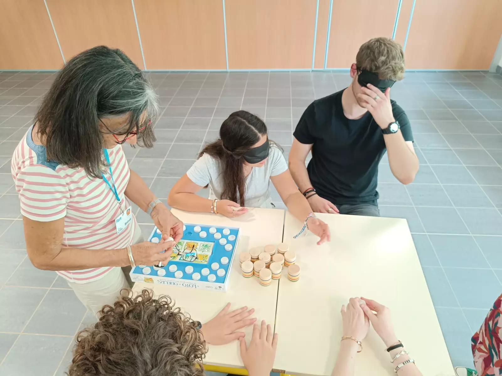– En découvrant des jeux et en réalisant des déplacements à l’aveugle
