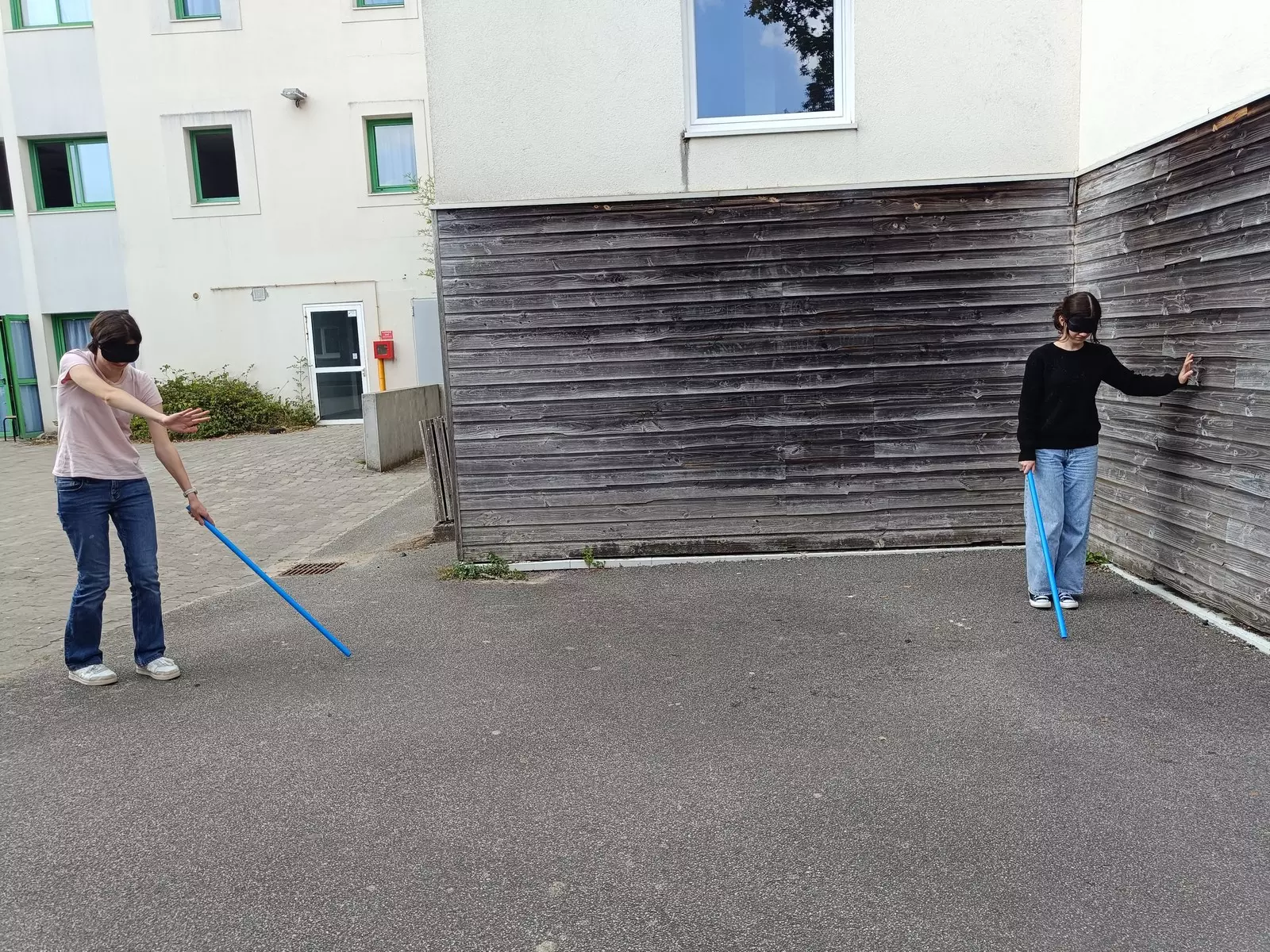 « Ce que j’ai trouvé le plus dur, c’est se déplacer quand on ne voit rien ! », « moi je me suis sentie perdue les yeux bandés, même si je m’aidais d’une canne » « et tous ces bruits mélangés qui ne me donnaient pas toujours l’information recherchée »
