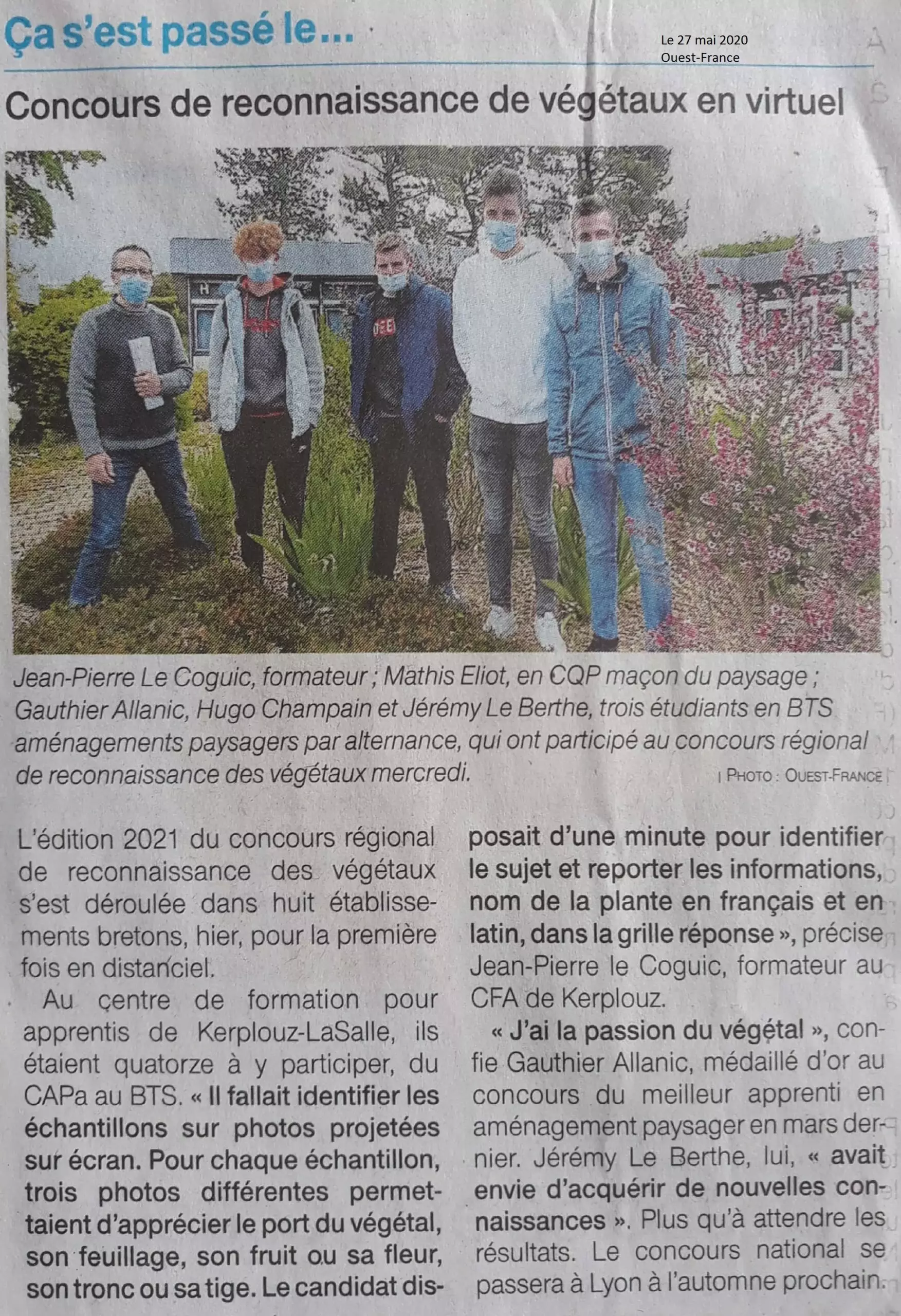 Concours de reconnaissance de végétaux en virtuel (1 article Le Télégramme + 1 article Ouest-France)