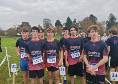 Le départemental se déroulait cette année au domaine de Manehouarn à Plouay sous un temps automnal doux et ensoleillé. Le circuit très technique et accidenté a donné pas mal de fil à retordre à nos jeunes coureurs. Mais, c’était sans compter sur leur détermination à se surpasser pour parcourir les distances imposées. (4410 mètres pour les juniors garçons et 3310 mètres pour les cadettes, juniors filles)