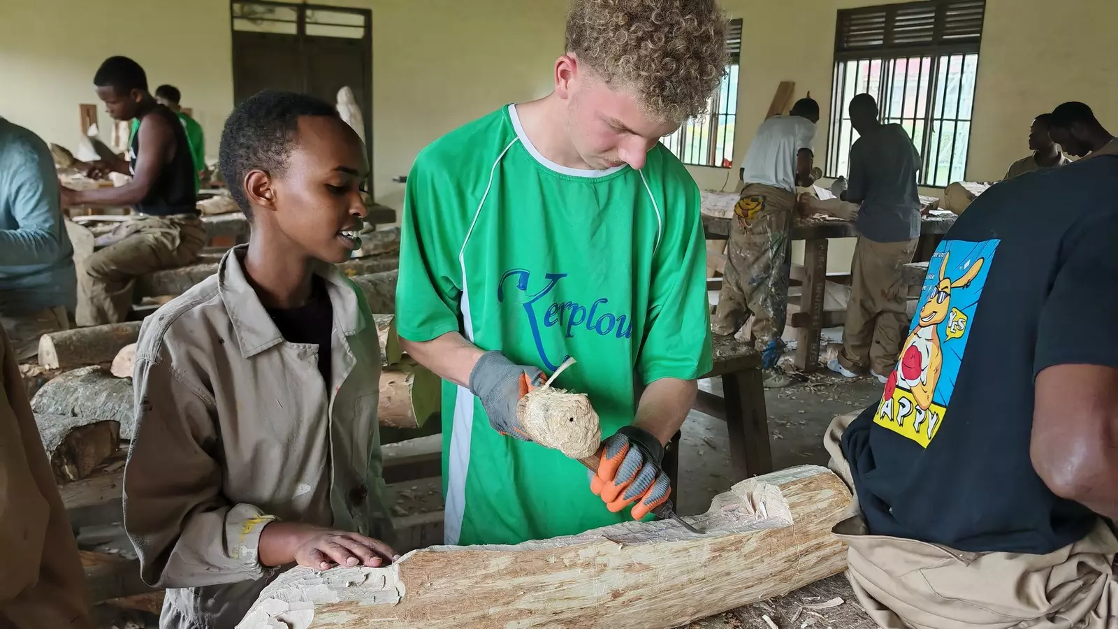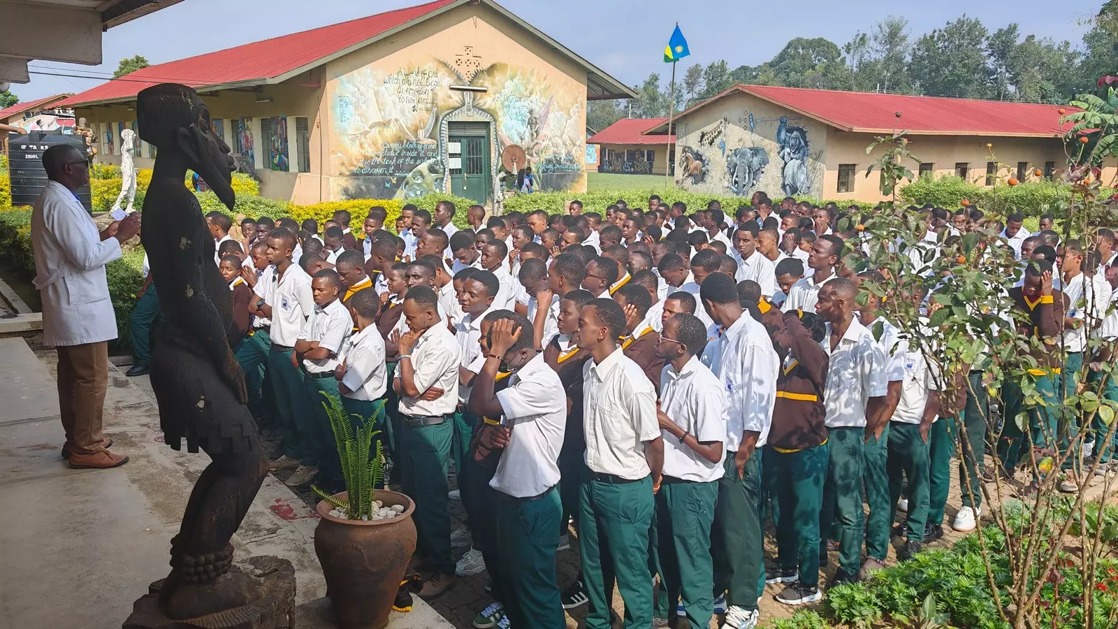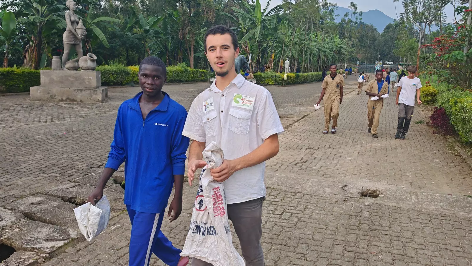 Après une visite très émouvante au mémorial du génocide à Kigali (la capitale) le dimanche matin, le groupe se rend en bus à Nyundo, découvrant les magnifiques paysages du pays aux mille collines : « Dès notre arrivée, nous sommes accueillis chaleureusement dans la communauté des frères Lasalle de l’Ecole d’Arts de Nyundo »