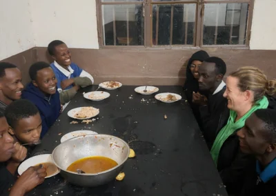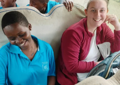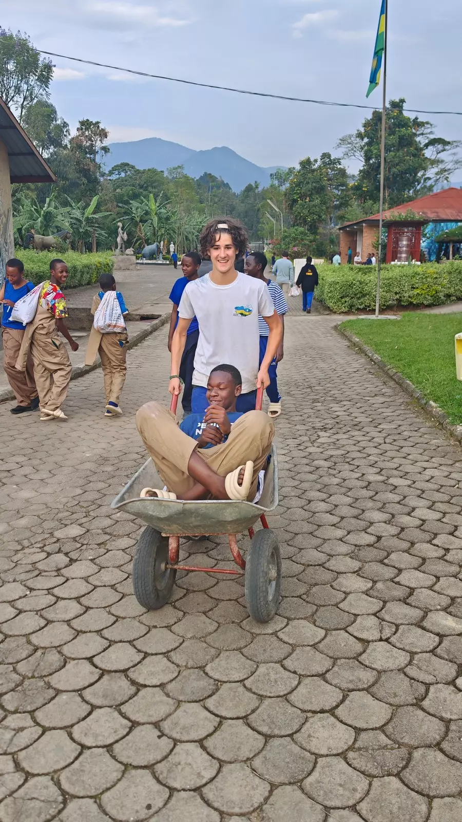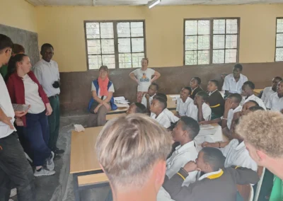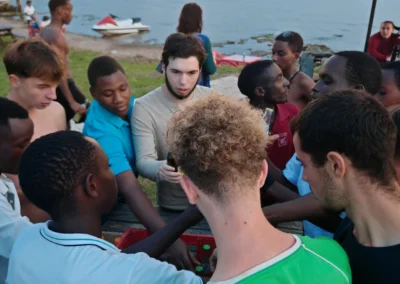 Après les cours, à partir de 16h30, place aux activités avec les lycéens rwandais : « des sportifs et de vrais artistes talentueux avec qui on échange bien malgré la barrière de la langue. Ils parlent le kinyarwanda en famille et les cours se font en anglais (depuis 2008) ! Au début on s’observe, ensuite on arrive à communiquer. On découvre comment se passe la scolarité au Rwanda (chaque école ayant son uniforme). On est surpris de les voir étudier avec une si grande autonomie ! »