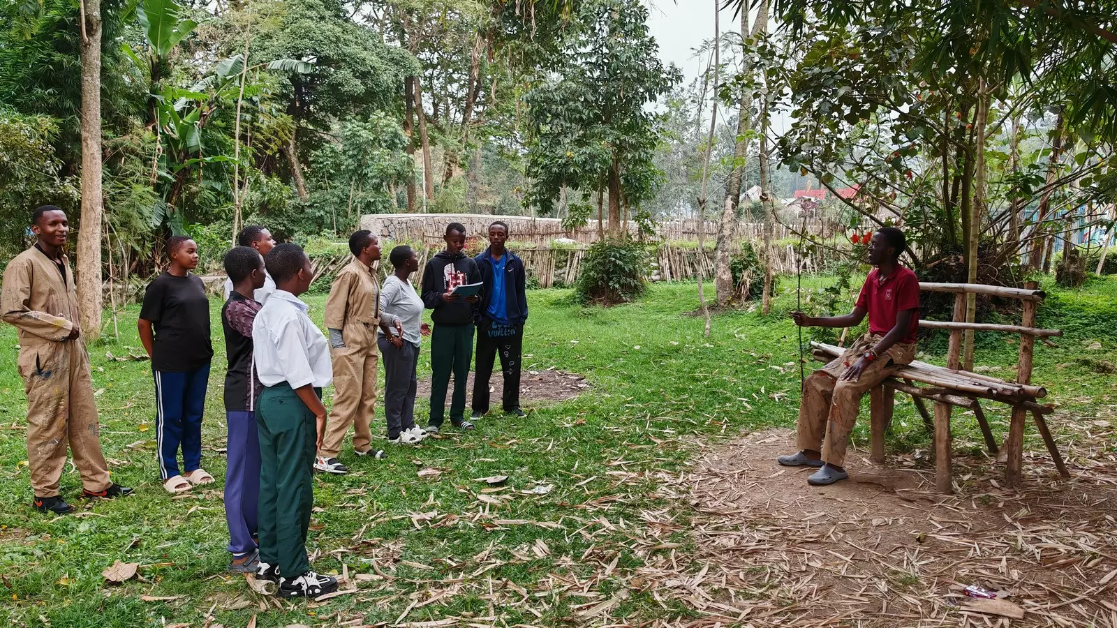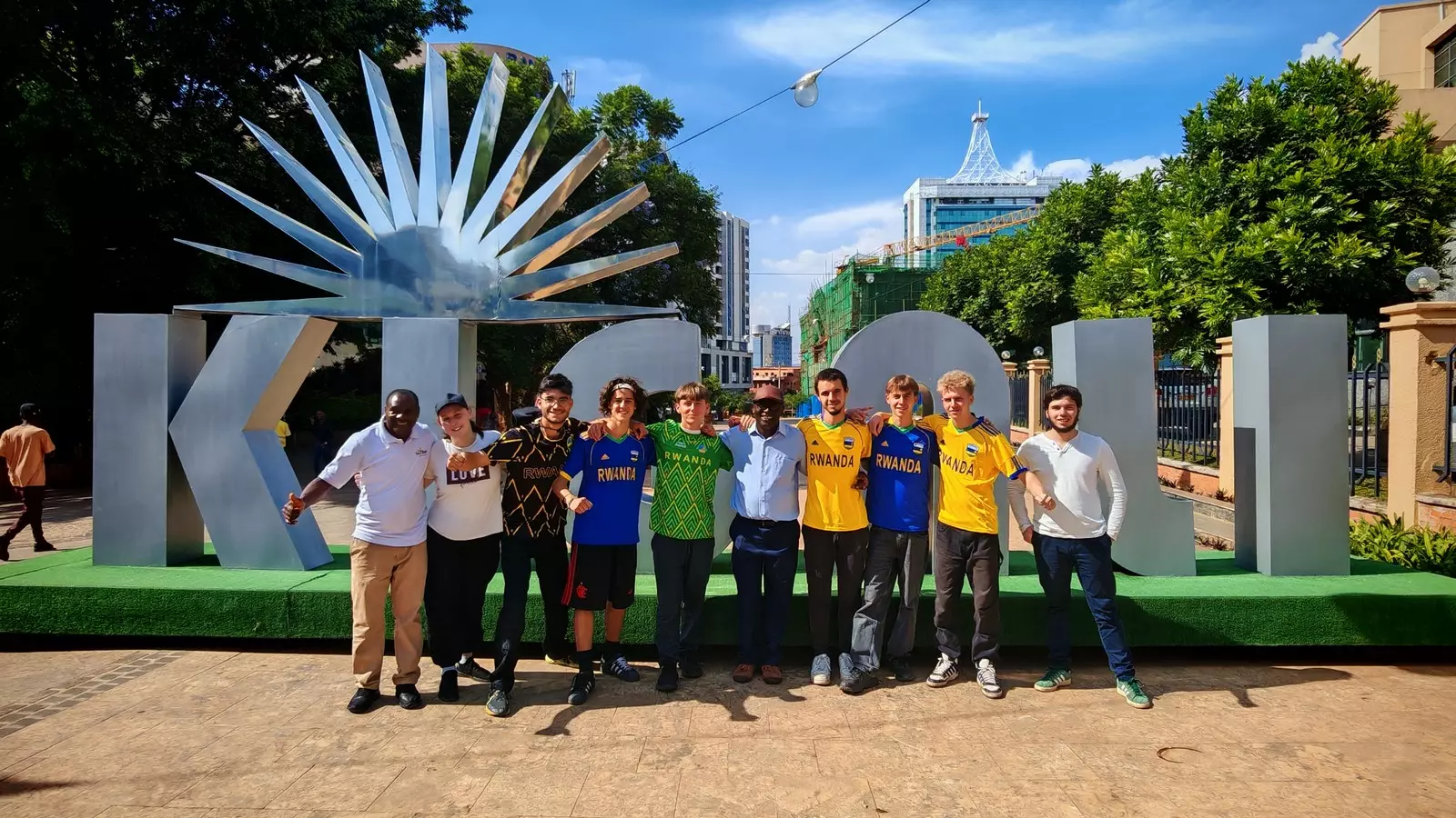 Octobre 2024 : l’équipe du SEMIL (8 jeunes et 3 accompagnateurs du lycée) prend la direction du Rwanda, laissant malheureusement derrière elle Ewan, blessé en stage quelques jours avant le départ !.