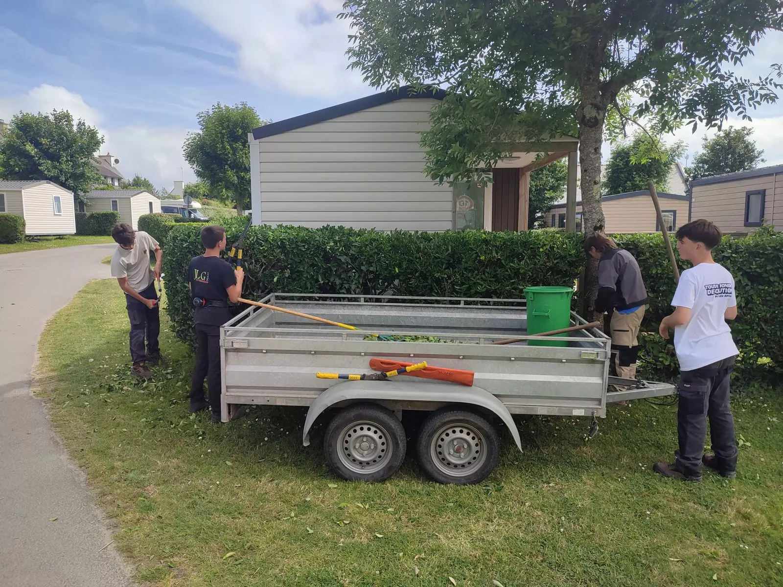 Le stage avait pour objectif principal l’entretien des espaces verts du camping, qui s’étend sur 2 hectares. Les élèves ont ainsi participé à la taille des végétaux autour des mobile-homes et des zones de tentes, une activité nécessitant patience et minutie. Ils ont été guidés par plusieurs enseignants : Nicolas, Régis, Sébastien, Aurélia et Alain, qui ont supervisé les différentes tâches : taille de haies et d’arbustes, tonte, débroussaillage, tout en veillant à la sécurité de chacun.
