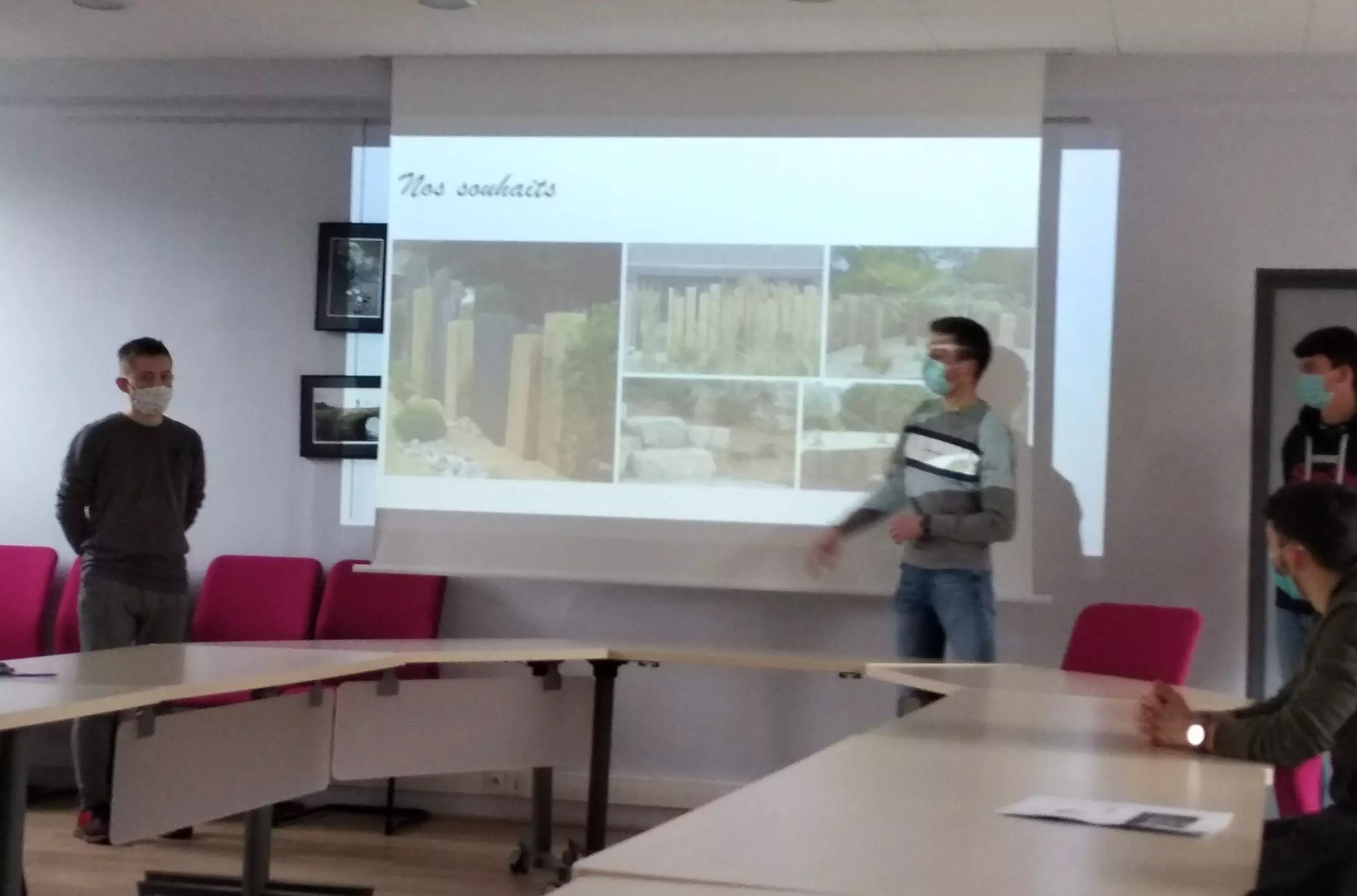 Ils ont ainsi pu avoir des retours, des avis, questionnements sur leurs propositions techniques, végétales, sur les principes de conception, l’aspect économique, les fournisseurs et la planification du futur chantier par rapport aux échéances… Ils se sont également rendus compte de l’importance du travail de mise en forme de leurs idées et d’écoute du ‘’client’’.