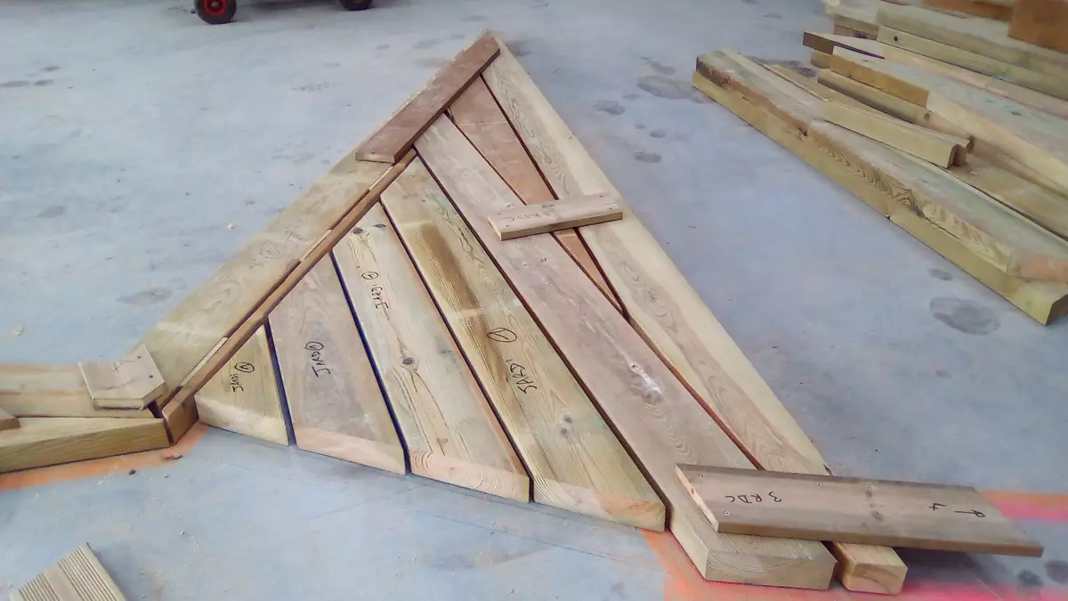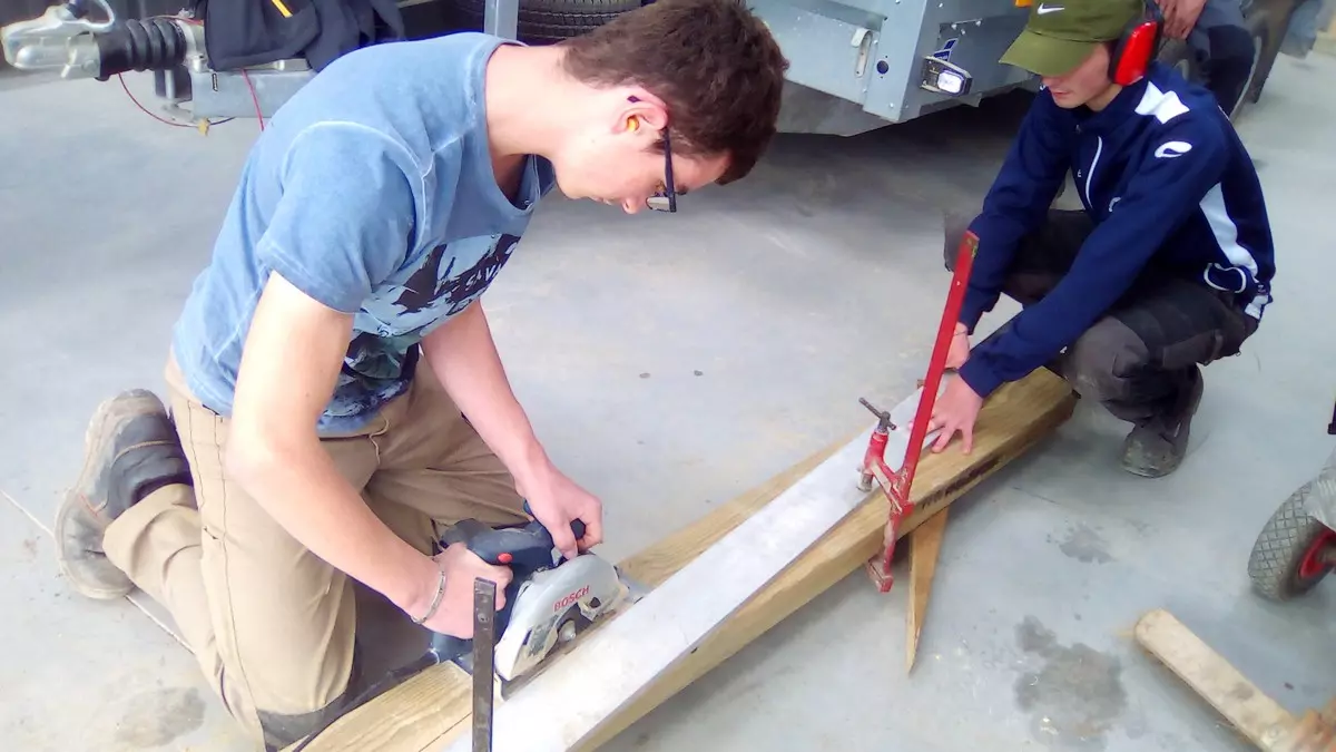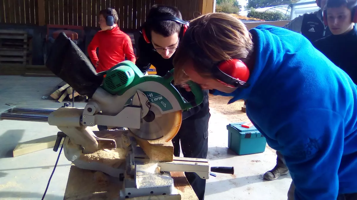 – découpe des poutres en bois et des lames de fixations ;