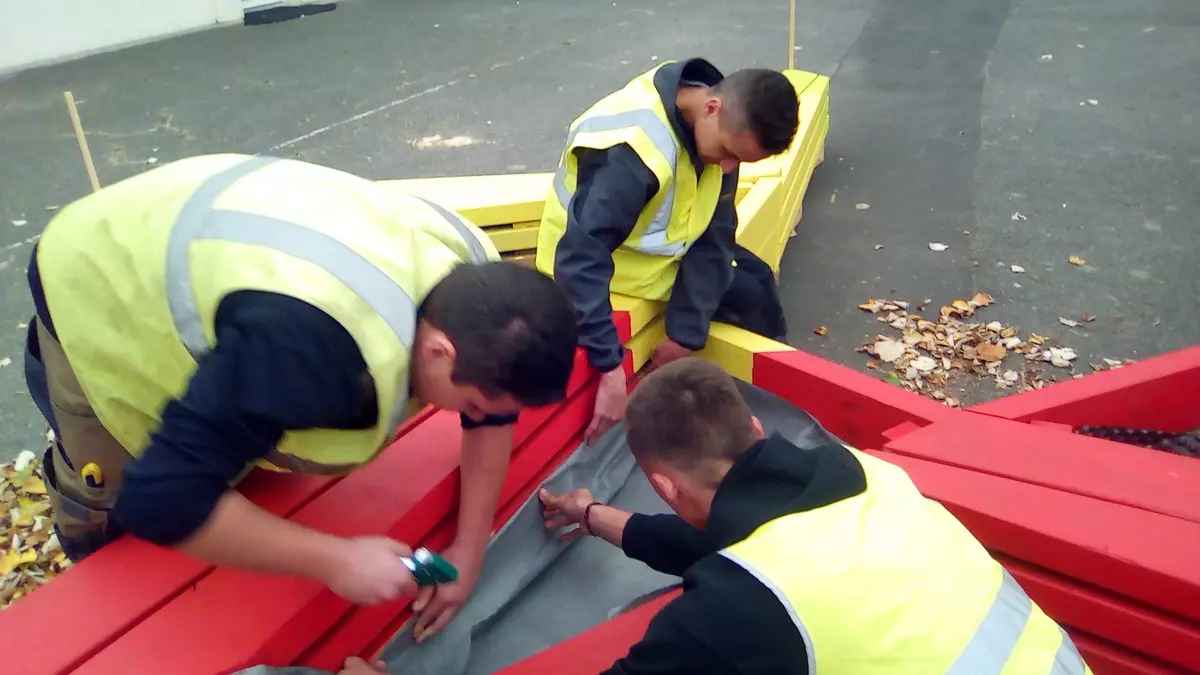 Son souhait, à l’écoute des collégiens et des enseignants, devait augmenter le nombre de places assises de la cour de récréation tout en permettant au lycée Kerplouz d’apporter sa touche végétale. Les délais étaient assez courts car le projet devait être livré pour le 6 octobre ! Après quelques jours de réflexion et d’inspiration, l’idée de l’étoile LaSallienne était née. Chaque branche composerait l’assise sur différentes hauteurs (pour que chaque taille de collégien y trouve son aise) et les 3 espaces vides accueilleraient des jardinières.