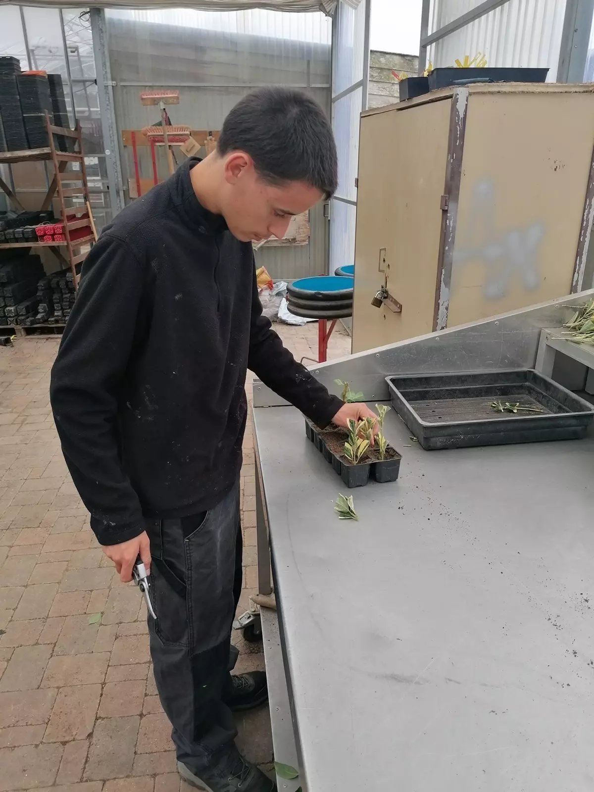 Les techniques de bouturage ont été étudiées en détail avec des explications techniques approfondies. La préparation du sol sur la plateforme de Kerplouz a montré l’importance des conditions du sol (texture et structure), Enfin, les élèves ont réalisé des boutures dans la serre principale du domaine sur plaques alvéolées et en godets.