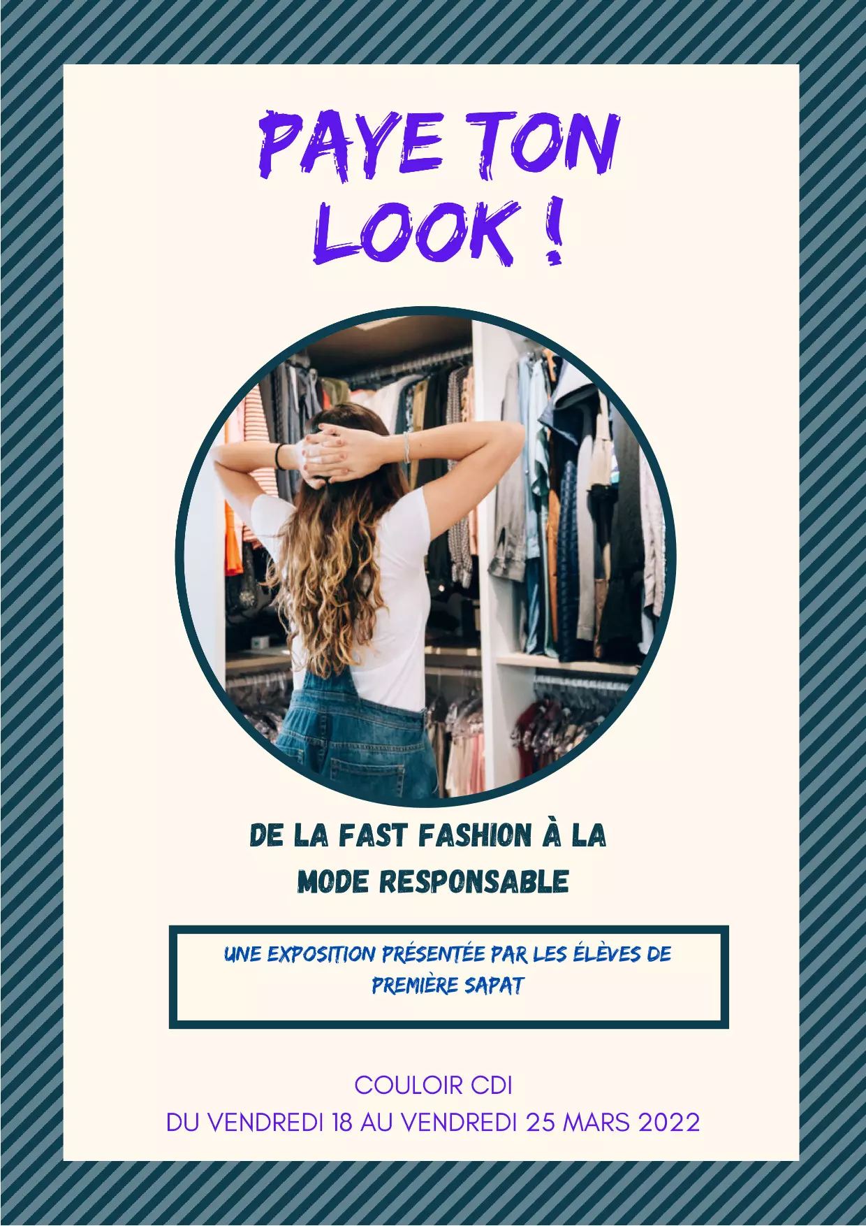 Dans le cadre de leur stage collectif, les élèves de 1ère SAPAT organisent une exposition dans le couloir du CDI sur le thème de la « Fast fashion« .