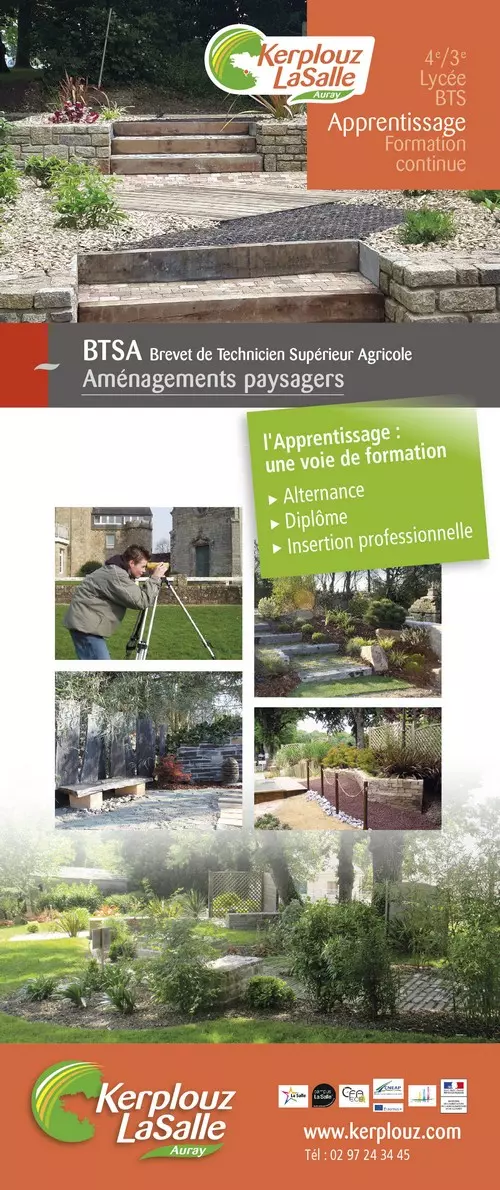 Le Brevet de Technicien Supérieur Agricole en Aménagements paysagers, diplôme de niveau III, est accessible par la voie de l’apprentissage à tous les jeunes de 16 à 29 ans. Le contrat d’apprentissage est un contrat de travail d’une durée de 2 ans. Le technicien supérieur, salarié en aménagements paysagers, encadre une ou plusieurs équipes. Il est responsable de l’application des règles et normes de sécurité au niveau des personnes et des biens. Au niveau technique, il est responsable du respect des règles professionnelles et des règles de l’art pour la réalisation des divers ouvrages et met en oeuvre les plans avec précision.
