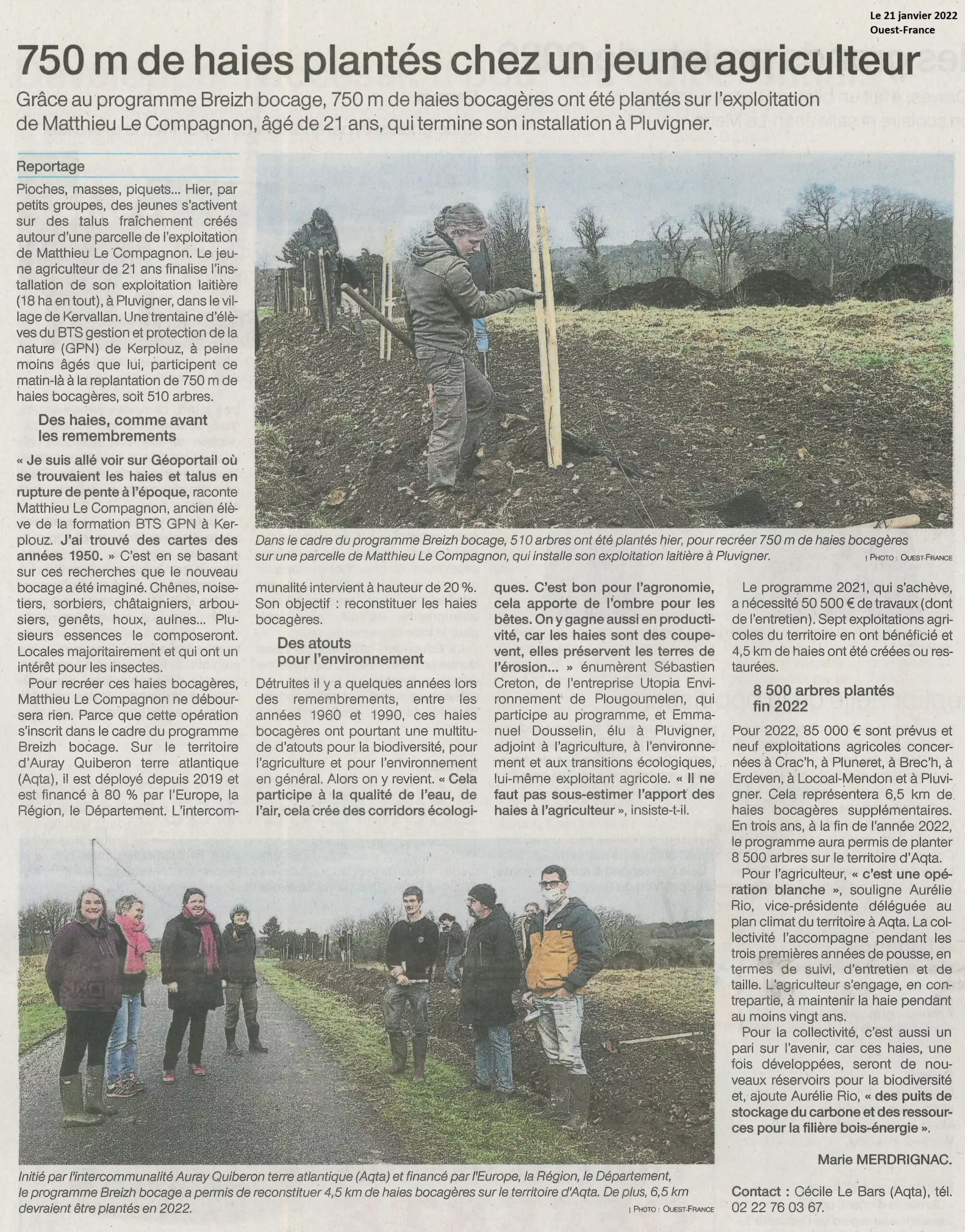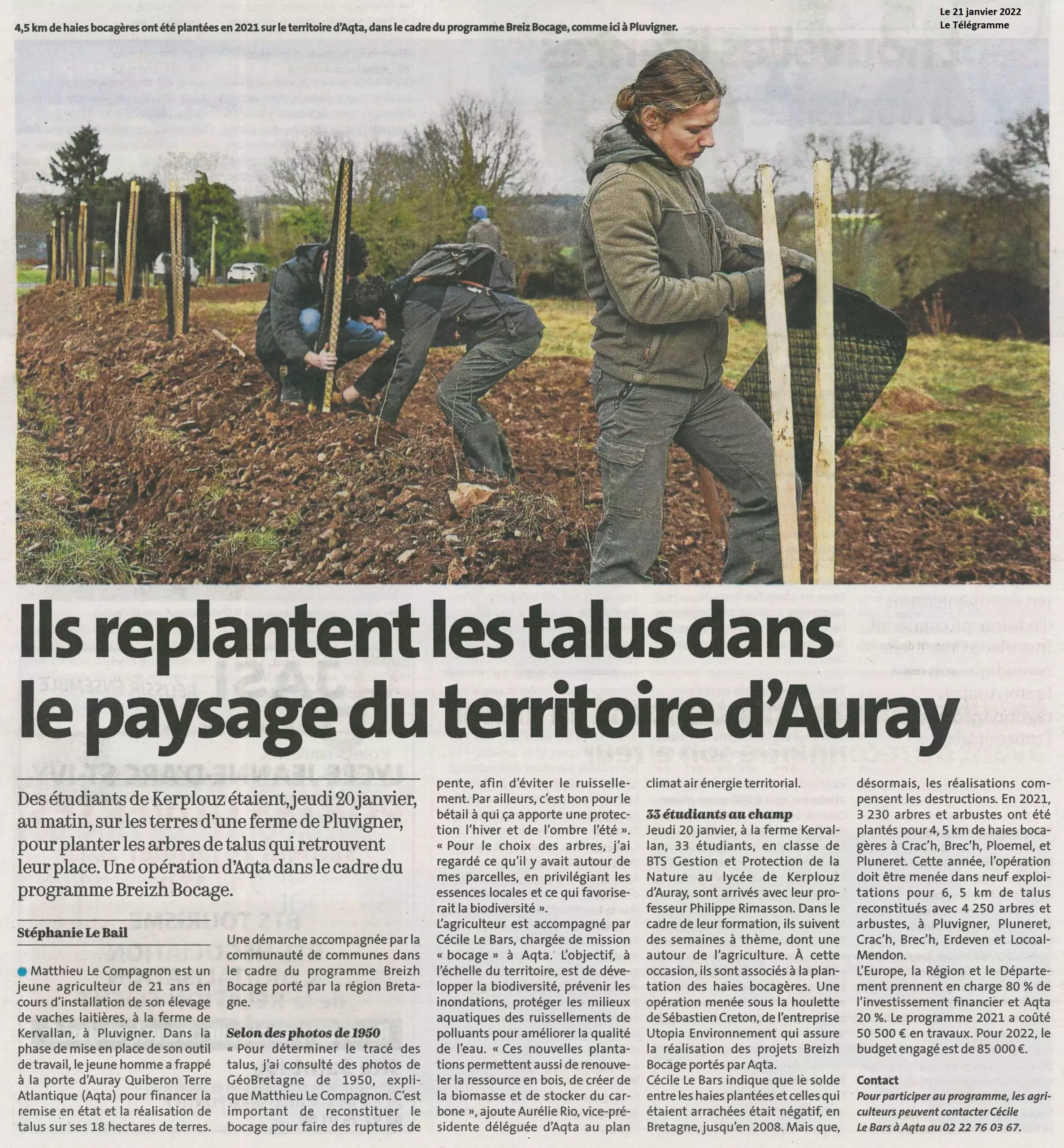 Ils replantent les talus dans le paysage du territoire d’Auray (2 articles Le Télégramme + Ouest-France) par CDI | 21 Jan 2022 | BTS Gestion et Protection de la Nature, La presse en parle | 0 commentaires Poster le commentaire Annuler la réponseVotre adresse e-mail ne sera pas publiée. Les champs obligatoires sont indiqués avec *Commentaire * Nom * E-mail * Site web Δ Ce site utilise Akismet pour réduire les indésirables. En savoir plus sur la façon dont les données de vos commentaires sont traitées.