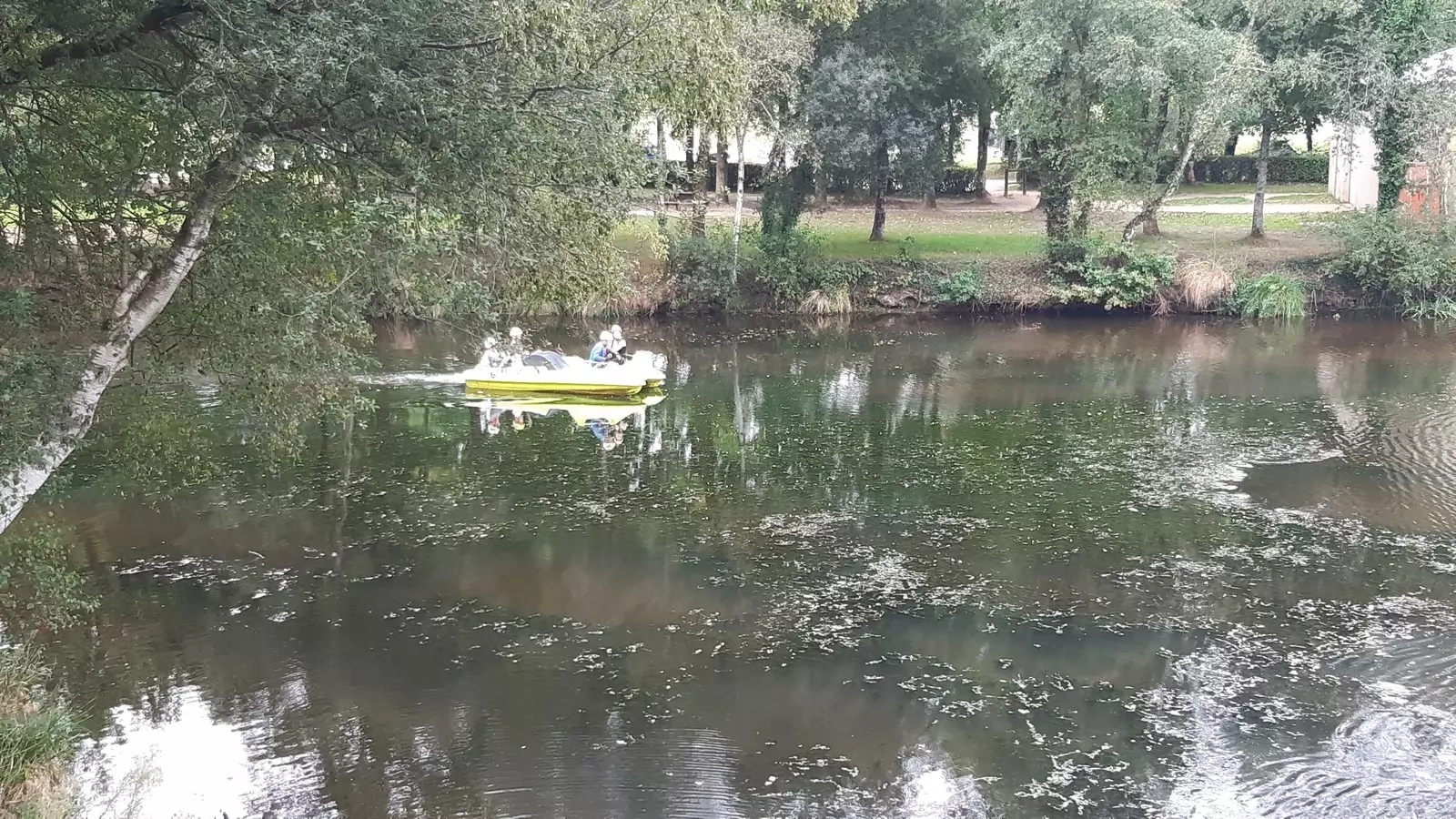 La tyrolienne conduisait à l’île, au centre du lac, pour rejoindre la rive, il fallait emprunter un pont de singe puis avancer sur un câble : « sur l’île, il y avait l’arrivée de la tyrolienne sur un arbre, puis elle tournait pour descendre jusqu’à la terre. L’île était recouverte d’arbres verts, très hauts. » (Anna). Après quoi, deux pédalos attendaient pour retourner au point de départ : « J’ai aimé le pédalo parce que j’ai pédalé que c’était un des moments où on parlait le plus et où j’ai appris à connaître mes camarades. » (Nathan M).