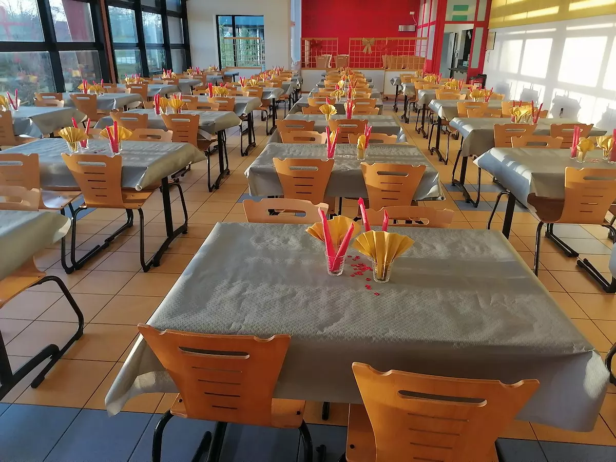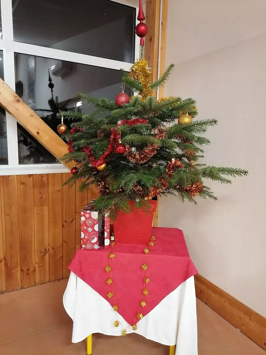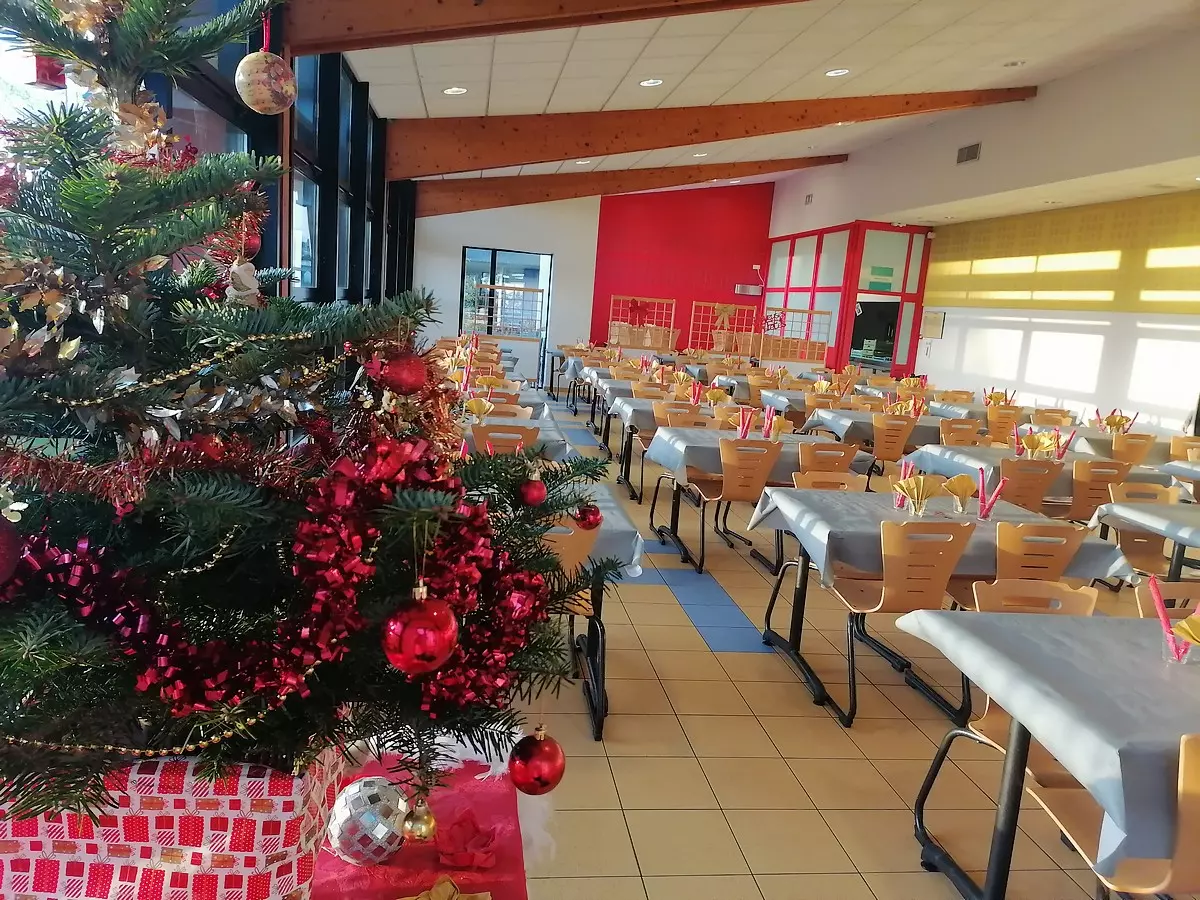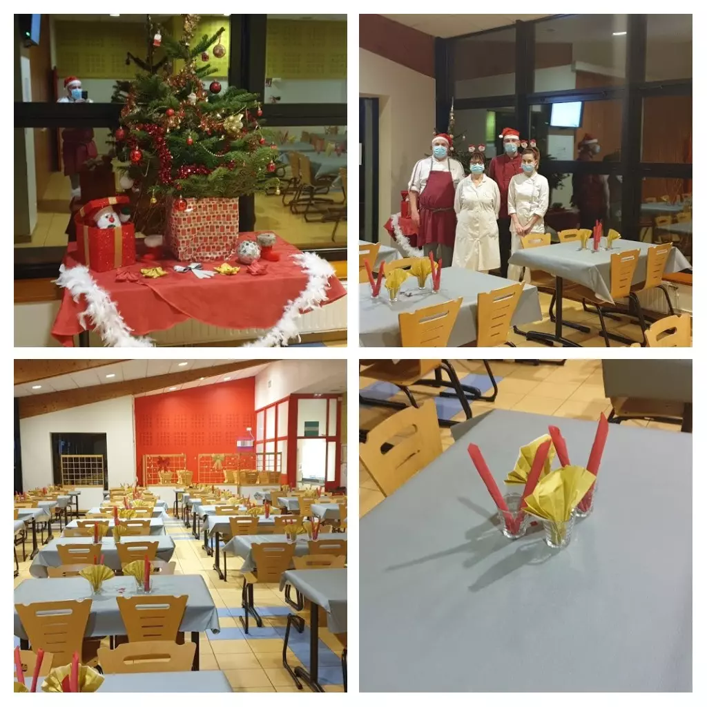 De petites tables décorées ont accueilli les internes pour le repas du soir. Une très belle crèche fabriquée par les apprentis est installée depuis le début de l’avent au centre de la cour.
