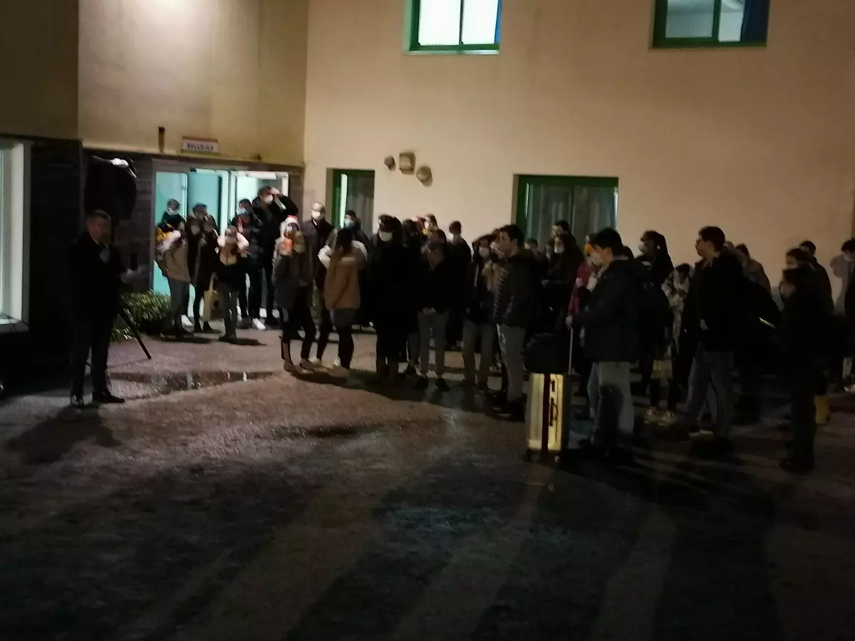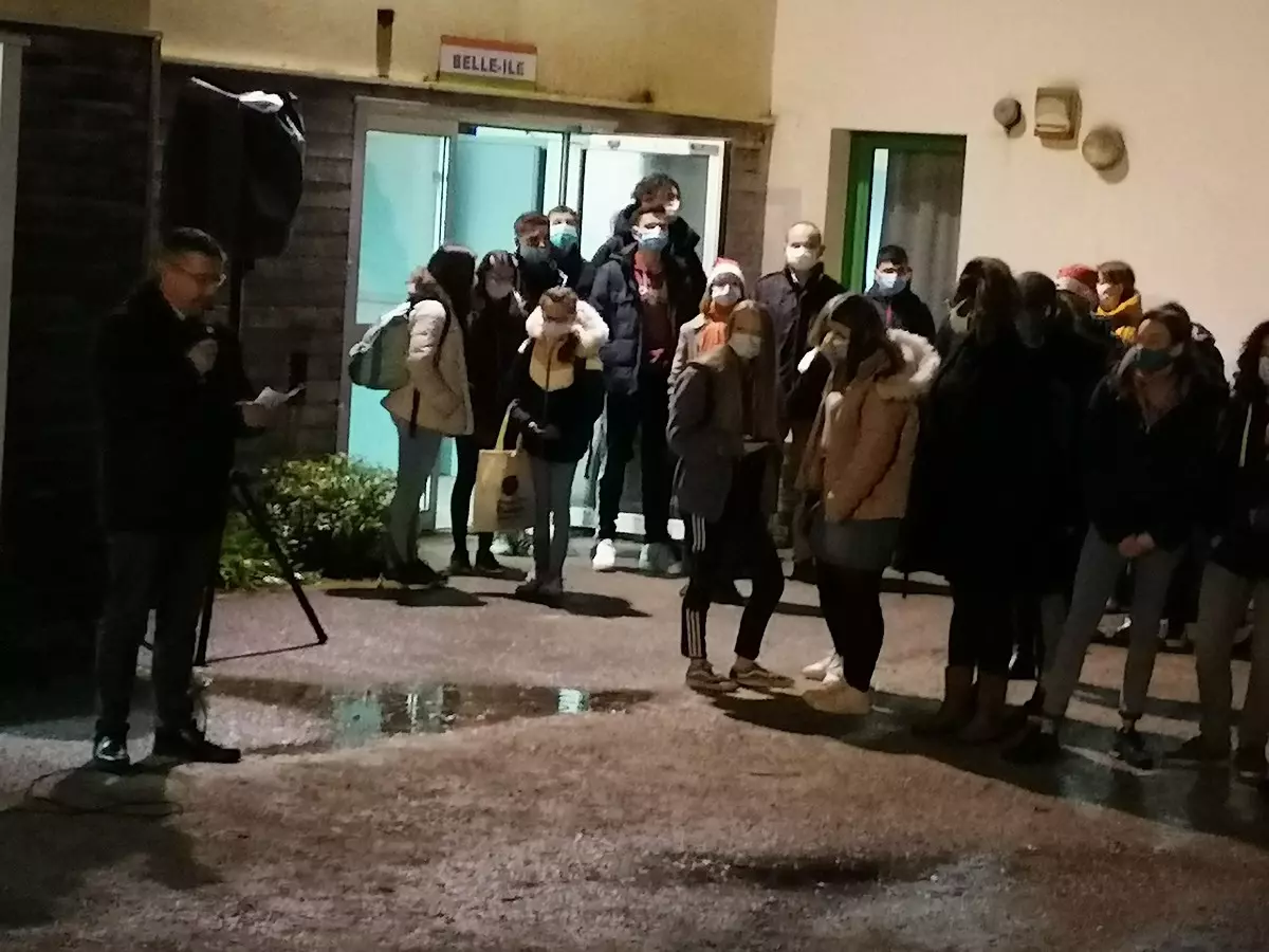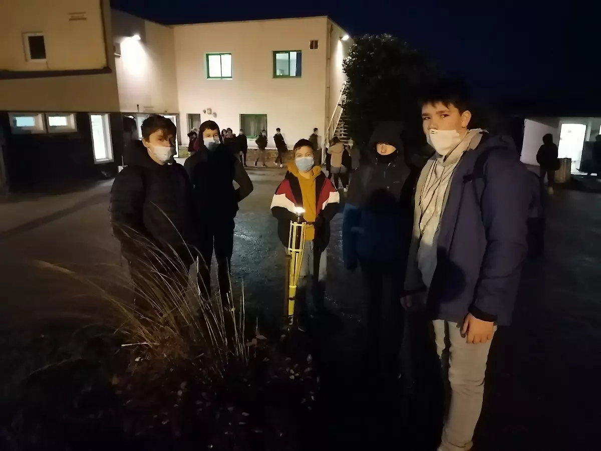 En descendant du car les apprenants sont arrivés ce vendredi matin dans une haie de flambeaux qui les accompagnaient jusqu’à la crèche. La pluie s’est arrêtée et a permis un petit temps de rassemblement dans la cour pour écouter les voeux du directeur.