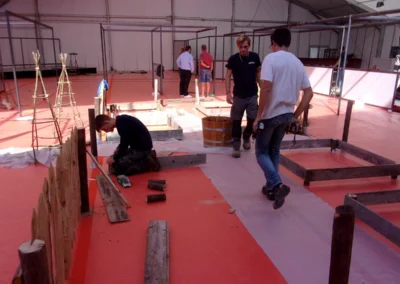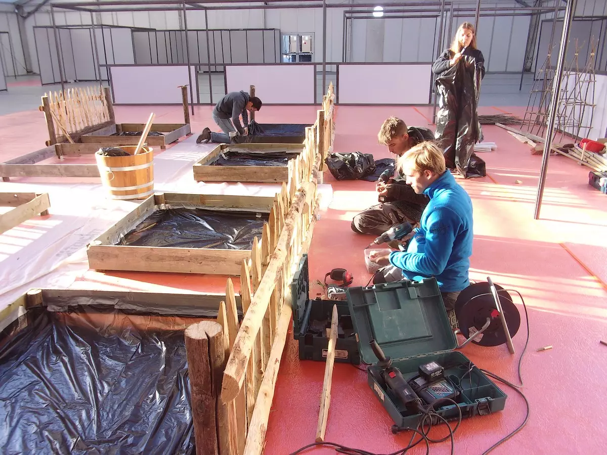 Tracé du jardin : au préalable les élèves ont élaboré une esquisse en s’inspirant des jardins de l’époque (entre le 8éme et le 15ème siècle), le plus connu est celui de Villandry.