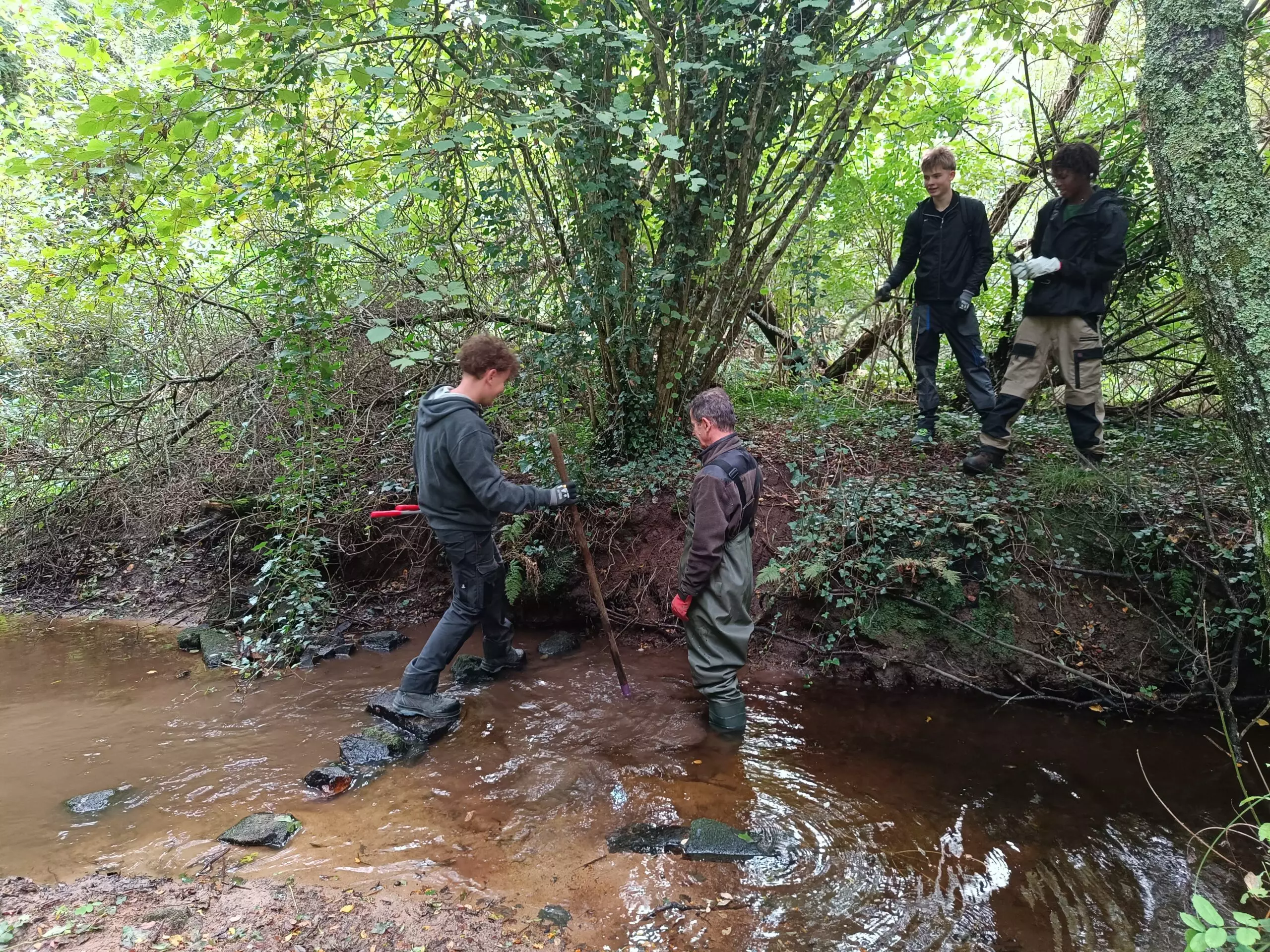 Equipés d’outils et dans le respect des consignes, le groupe a remis une partie des berges d’un affluent du Loch en lumière ! Travail en équipes, bonne humeur et beaucoup d’énergie déployée ont permis au ruisseau de retrouver sa vigueur pour continuer à abriter la truite Fario, l’anguille, le chabot et le vairon…