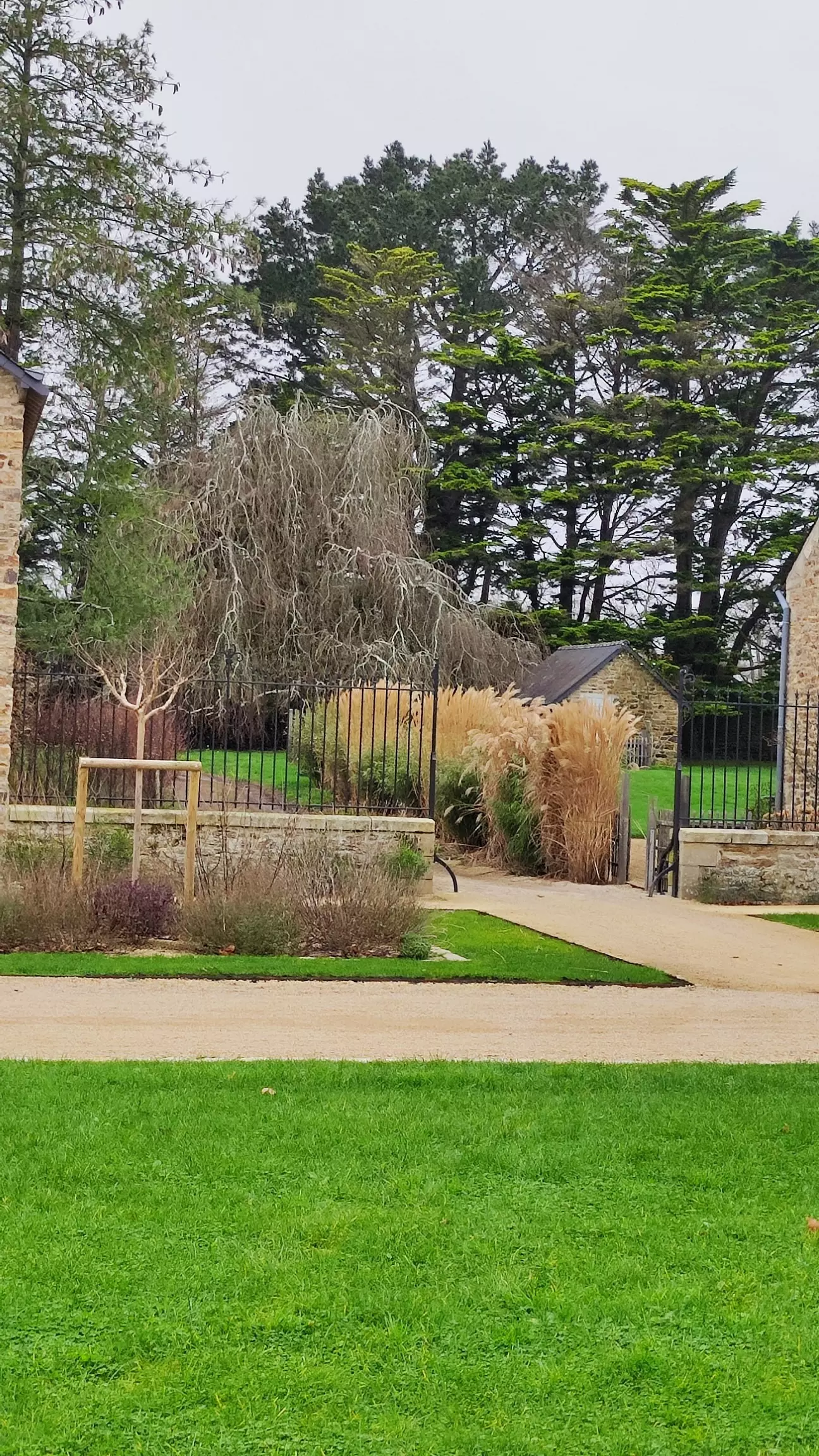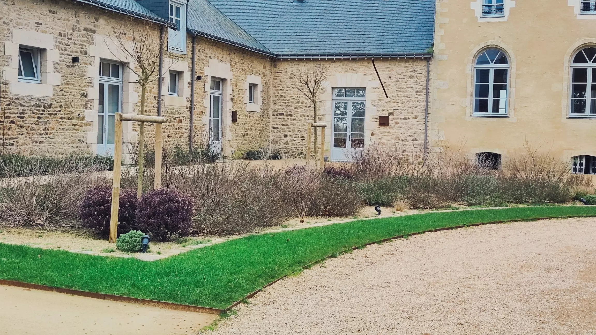 Le résultat est très harmonieux dans des tons doux et chaleureux : le béton érodé, les stabilisés renforcés, les végétaux dans la gamme des gris mettent parfaitement en valeur les bâtiments rénovés. Un esprit plus champêtre, plus fleuri, un peu plus sauvage à la belle saison a été voulu du côté des ‘’maisons de campagne’’, restaurées dans les anciennes écuries. La composition paysagère reste toujours très raffinée et travaillée avec de petits détails comme les voliges métalliques, leitmotiv structurant pour l’ensemble des espaces de vie.