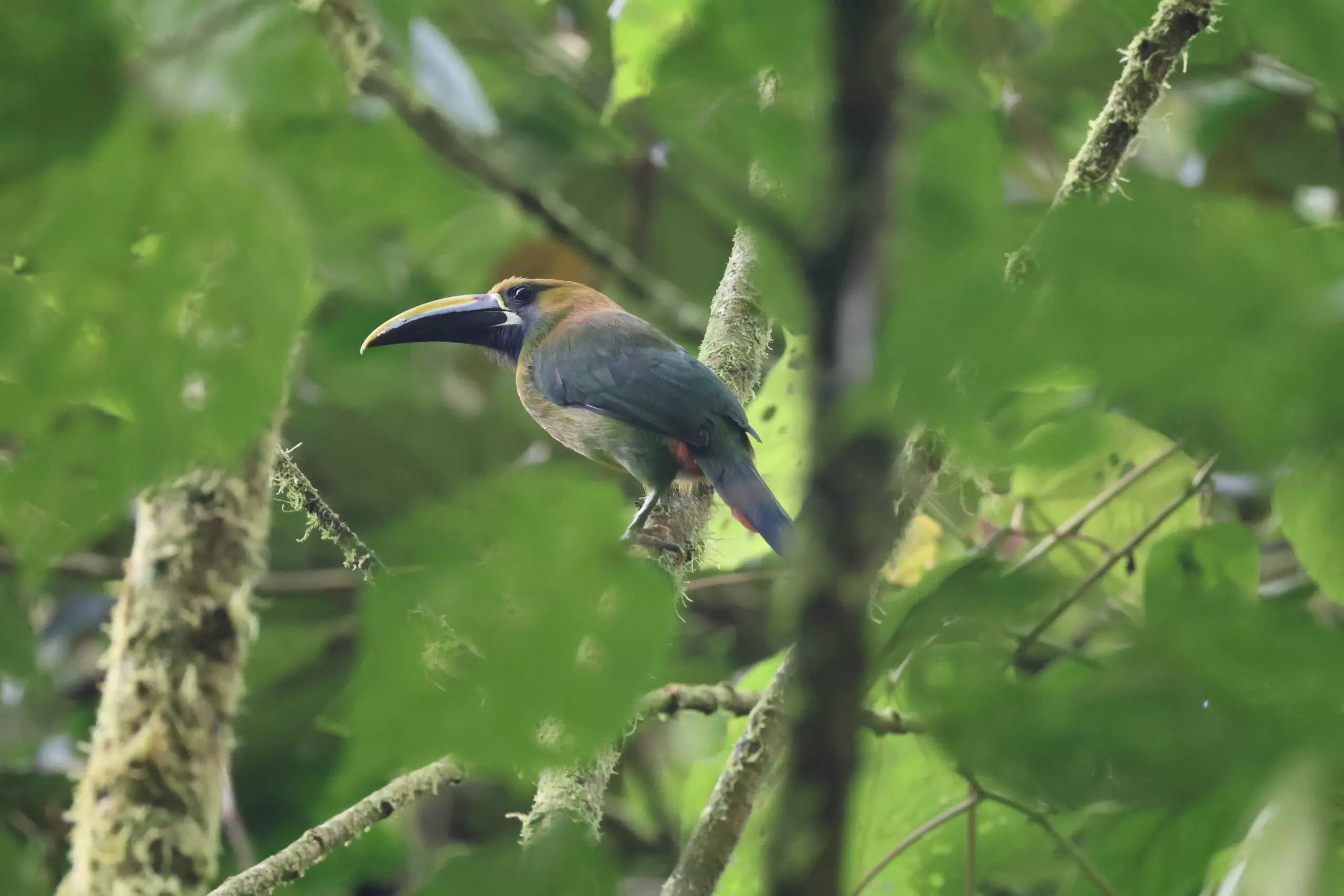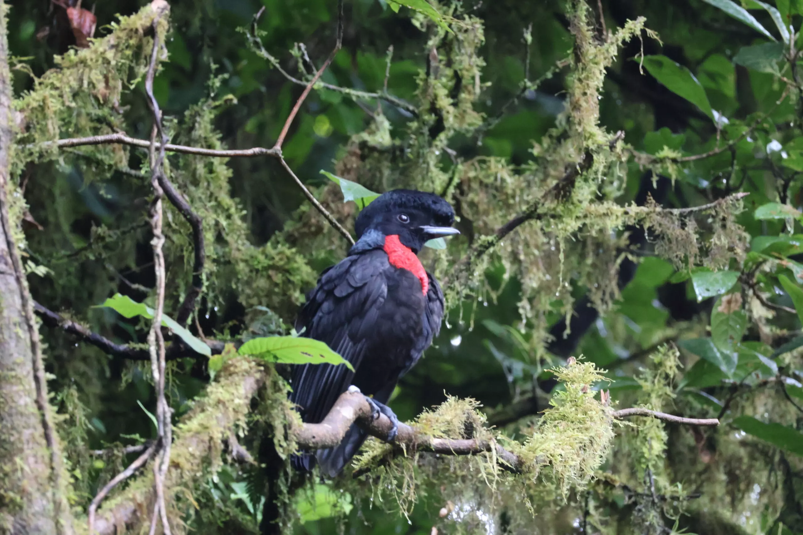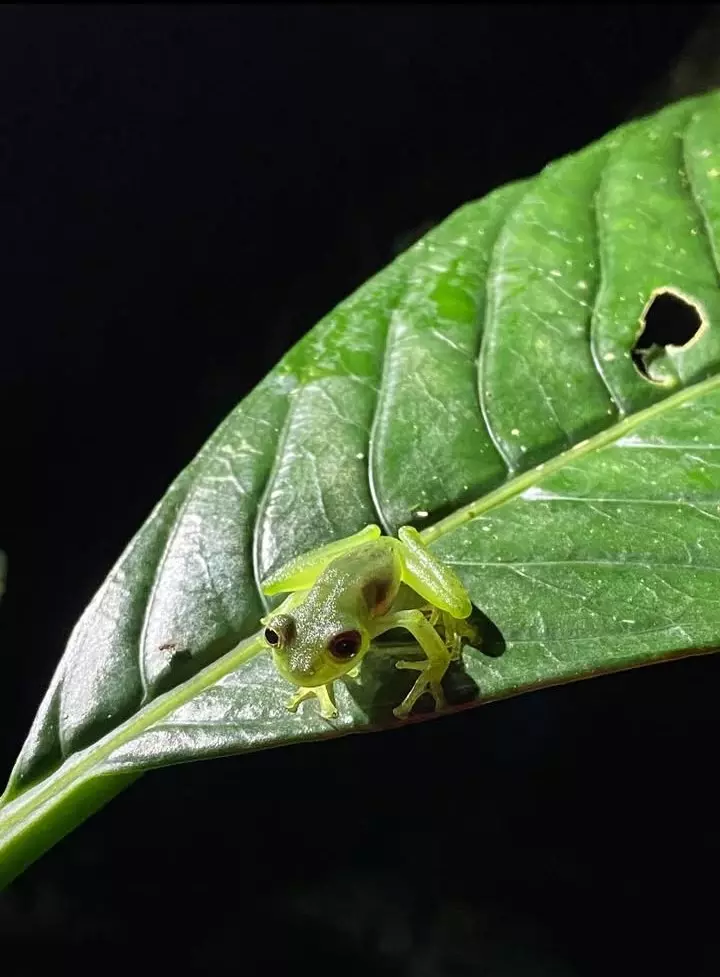 Les journées n’étaient jamais similaires, même si quotidiennement c’étaient les mêmes tâches à effectuer. Pour aller observer les Umbrella bird, il y avait 3 temps de 4h où l’on se relayait : de 5h à 9h ; de 9h à 13h ; et de 13h à 17h. Il y avait 15-20min de marche pour monter jusqu’au point d’observation avec tout le matériel nécessaire (appareil photo, carnet de notes, walkie-talkie,…). Le lever à 4h était dur au début mais c’était l’heure que je préférais car c’était là ou l’activité de l’Umbrella bird était la plus importante, et aussi car l’on assistait au lever du jour et donc au réveil de la nature. Pendant ce temps, pour ceux qui n’allaient pas observer, on marchait sur le circuit qui longe la rivière (nommé « Yellow trail ») où l’on recherchait des nids de femelle et essayait d’apercevoir des femelles. Et ceci tous les jours, en alternant les horaires.