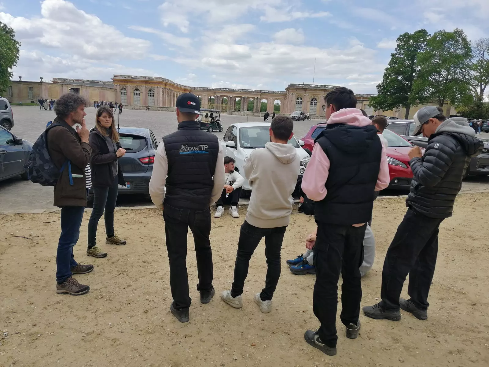 Les visites ont commencé par le jardin de l’Atlantique conçu au-dessus des rails du TGV de la gare Montparnasse puis la visite de l’Ecole Du Breuil. Le lendemain grande journée à Versailles pour une visite des jardins et la visite d’une partie privée des jardins du grand Trianon avec l’ingénieure Elena Secundo chargée du fleurissement du grand Trianon. 40 000 pas dans la journée, nos apprentis étaient épuisés !!