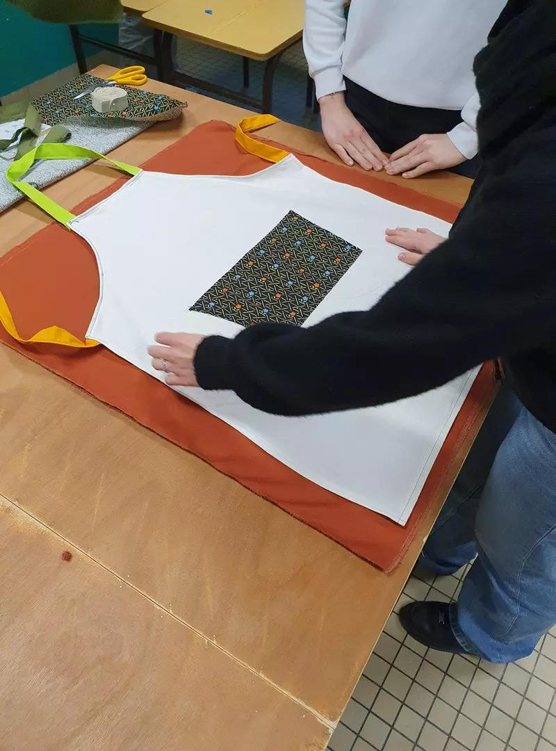Les élèves de seconde SAPAT fabriquent des tabliers pour les 3èmes option vente-accueil