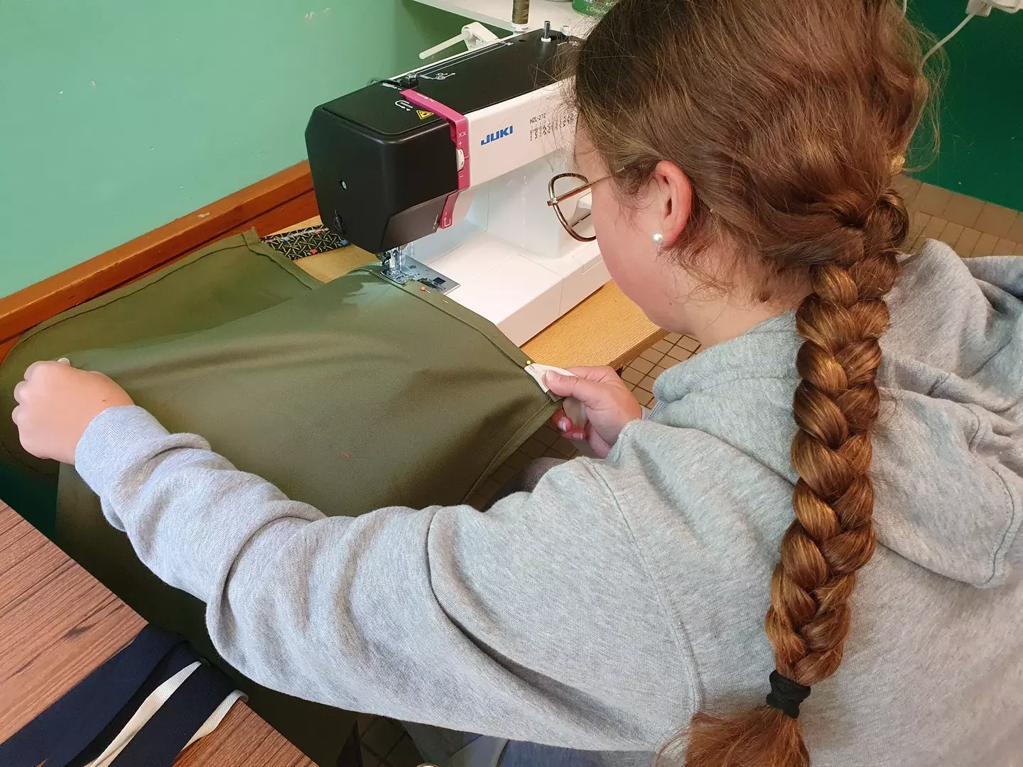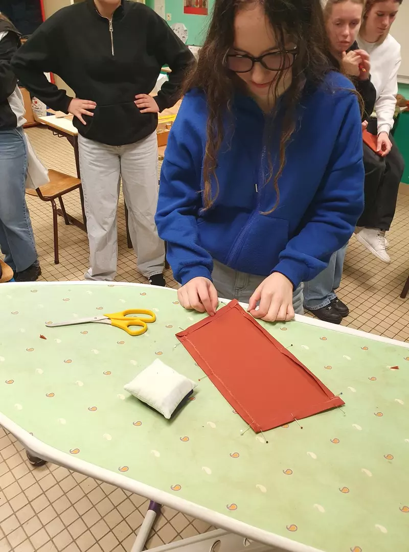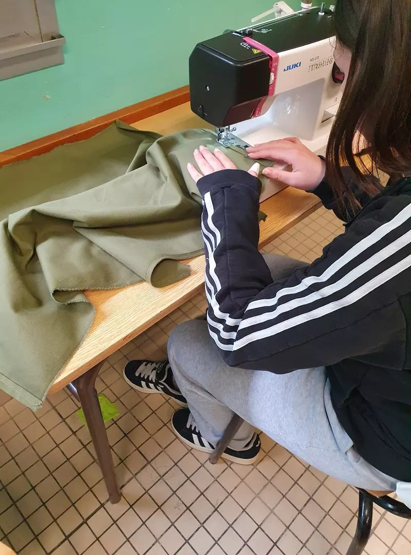 Avant de se lancer dans la confection, les élèves ont dû se familiariser avec les différents types de textiles, apprendre à utiliser une machine à coudre en autonomie et s’entraîner aux points de couture.
