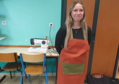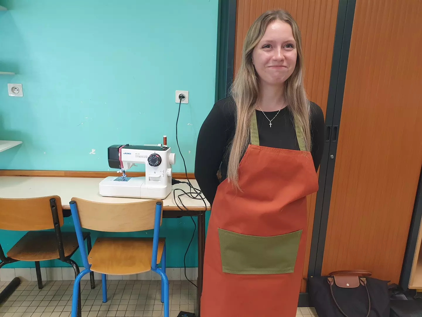 Pendant près de quatre mois, les élèves ont travaillé avec rigueur et créativité pour concevoir, de A à Z, quinze tabliers sur mesure. Tout a été pensé et réalisé par demi-groupes : création des patrons, prises de mesures, choix des tissus et des couleurs, découpe et couture. Un vrai travail d’équipe, alliant précision technique et sens esthétique.