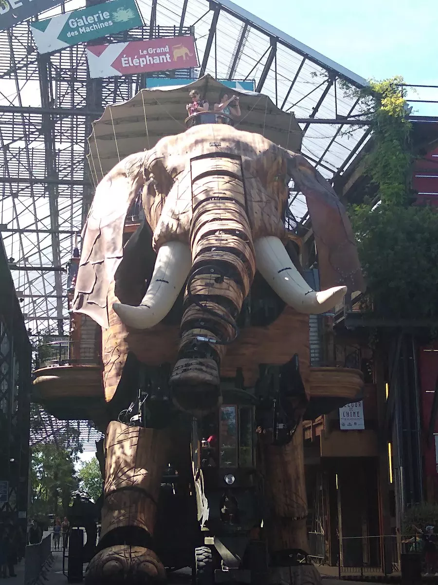 Le lendemain matin , nous nous sommes rendus à Nantes : Machines de l’île (visite guidée de la galerie des machines et balade sur l’éléphant) ; promenade dans le jardin japonais de l’île de Versailles puis croisière sur l’Erdre agrémentée de commentaires sur les nombreux châteaux.Dépaysement assuré, ambiance détendue et agréable.