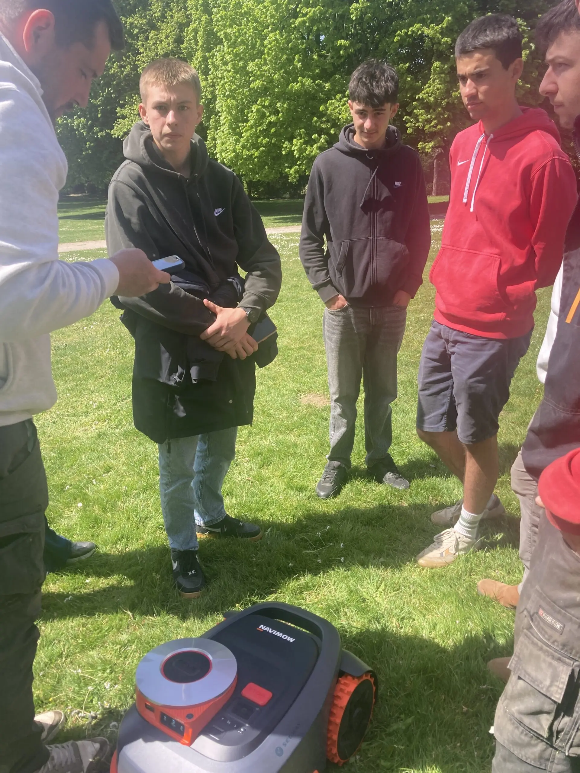 L’objectif de cette rencontre était de confronter les futurs professionnels du paysage aux réalités du terrain et aux performances de la technologie Trifusion (un seul système de navigation fusionnant trois technologies complémentaires : LiDAR, RTK et Vision). Cette avancée majeure permet une navigation de haute précision sans fil périmétrique, facilitant ainsi la gestion des chantiers complexes.