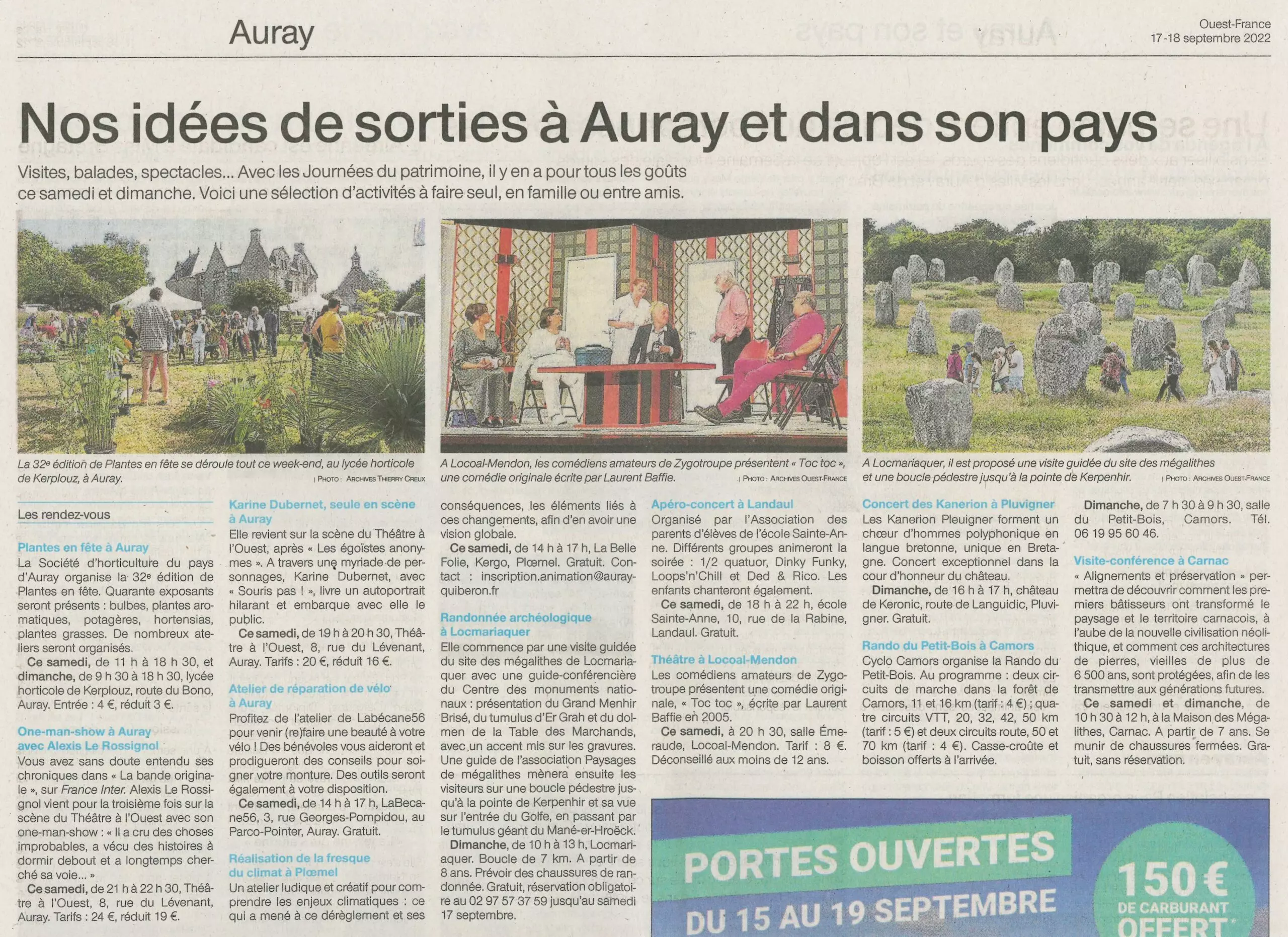 Nos idées de sorties à Auray et dans son pays par CDI | 17 Sep 2022 | A Kerplouz …, La presse en parle | 0 commentaires Poster le commentaire Annuler la réponseVotre adresse e-mail ne sera pas publiée. Les champs obligatoires sont indiqués avec *Commentaire * Nom * E-mail * Site web Δ Ce site utilise Akismet pour réduire les indésirables. En savoir plus sur la façon dont les données de vos commentaires sont traitées.