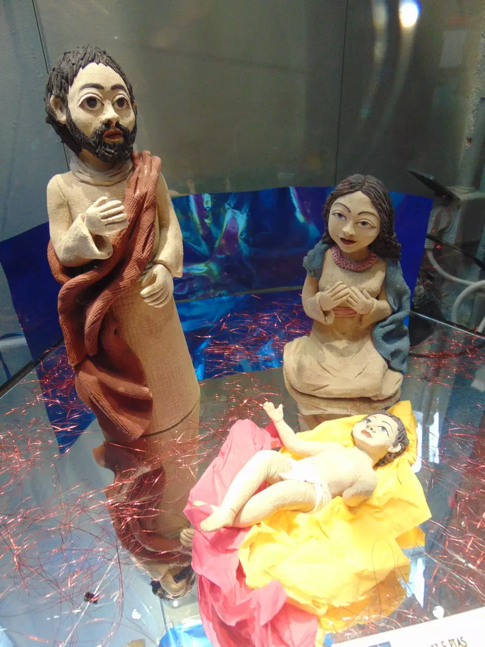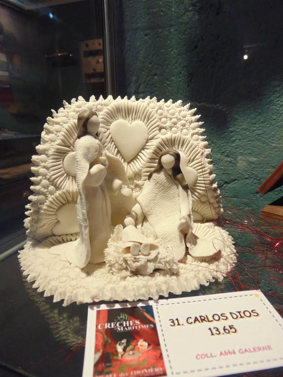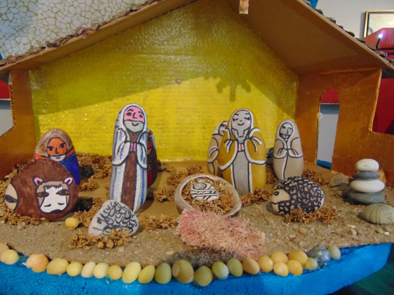 L’évocation de l’écologie et du rôle des laisses de mer se sont traduits par une queue de baleine protectrice en bois flotté protégeant une nativité stylisée. Les 2 autres projets ont davantage évoqué les contes et légendes par la réalisation de nativités avec des sirènes et animaux marins. Ils ont été réalisés en pâte de modelage durcissante peinte, agrémentée de coquillages et d’éléments de décor.