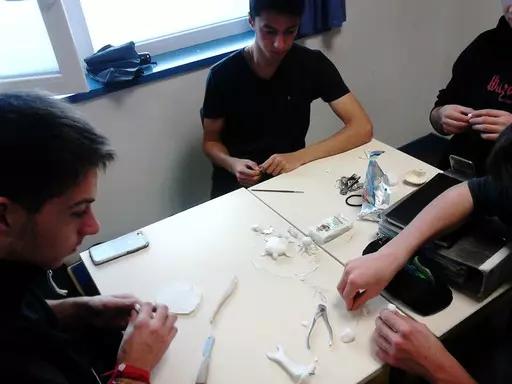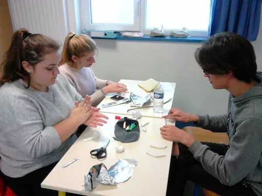 Ils se sont ensuite inscrits dans une démarche de création. La première étape était la recherche de références et la proposition individuelle de 3 idées chacun présentées au groupe. Une sélection de plusieurs « familles » de projet ont permis ensuite d’aboutir à la réalisation de 3 maquettes pour la classe.