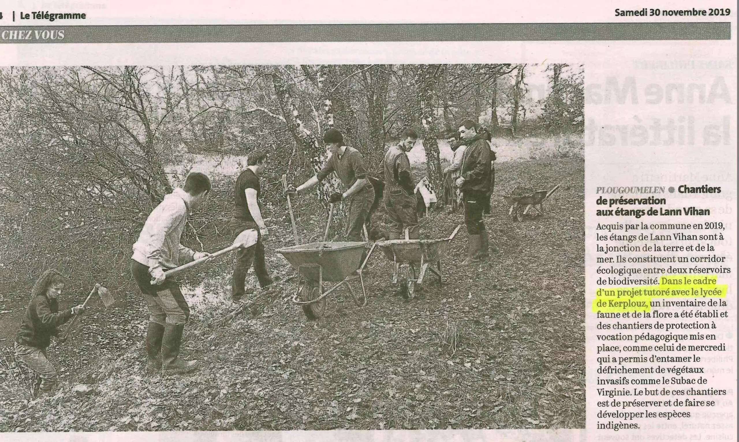 Plougoumelen : Les étudiants de Kerplouz restaurent les étangs par CDI | 1 Déc 2019 | BTS Gestion et Protection de la Nature, La presse en parle | 0 commentaires Poster le commentaire Annuler la réponseVotre adresse e-mail ne sera pas publiée. Les champs obligatoires sont indiqués avec *Commentaire * Nom * E-mail * Site web Δ Ce site utilise Akismet pour réduire les indésirables. En savoir plus sur la façon dont les données de vos commentaires sont traitées.