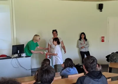 Nous récompensons donc Naïma le Port (4ème Rouge) pour la médaille de bronze, Enora Canot-Khimoun (4ème Jaune) pour la médaille d’argent puis Mélam Périchot et Joulyan Colin (4ème Jaune) ex aequo pour la médaille d’or.