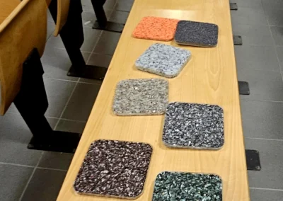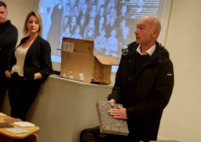 Ils étaient accompagnés d’un de leurs fournisseurs et représentant de Résin’Architecte qui commercialise entre autres la résine drainante et les moquettes de pierre. Produits encore peu connus en France mais qui par ses qualités et ses possibilités esthétiques gagneront du terrain pour la réalisation de terrasse, voie carrossable, parking.