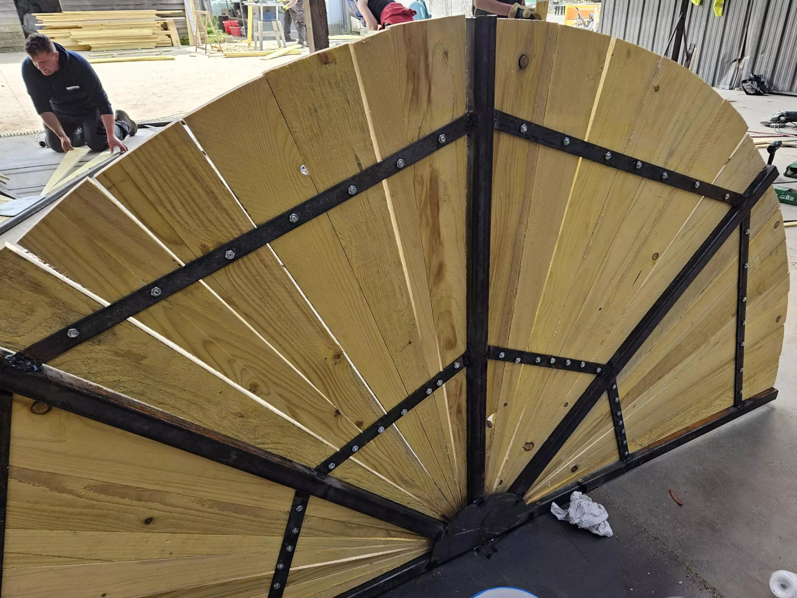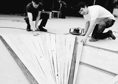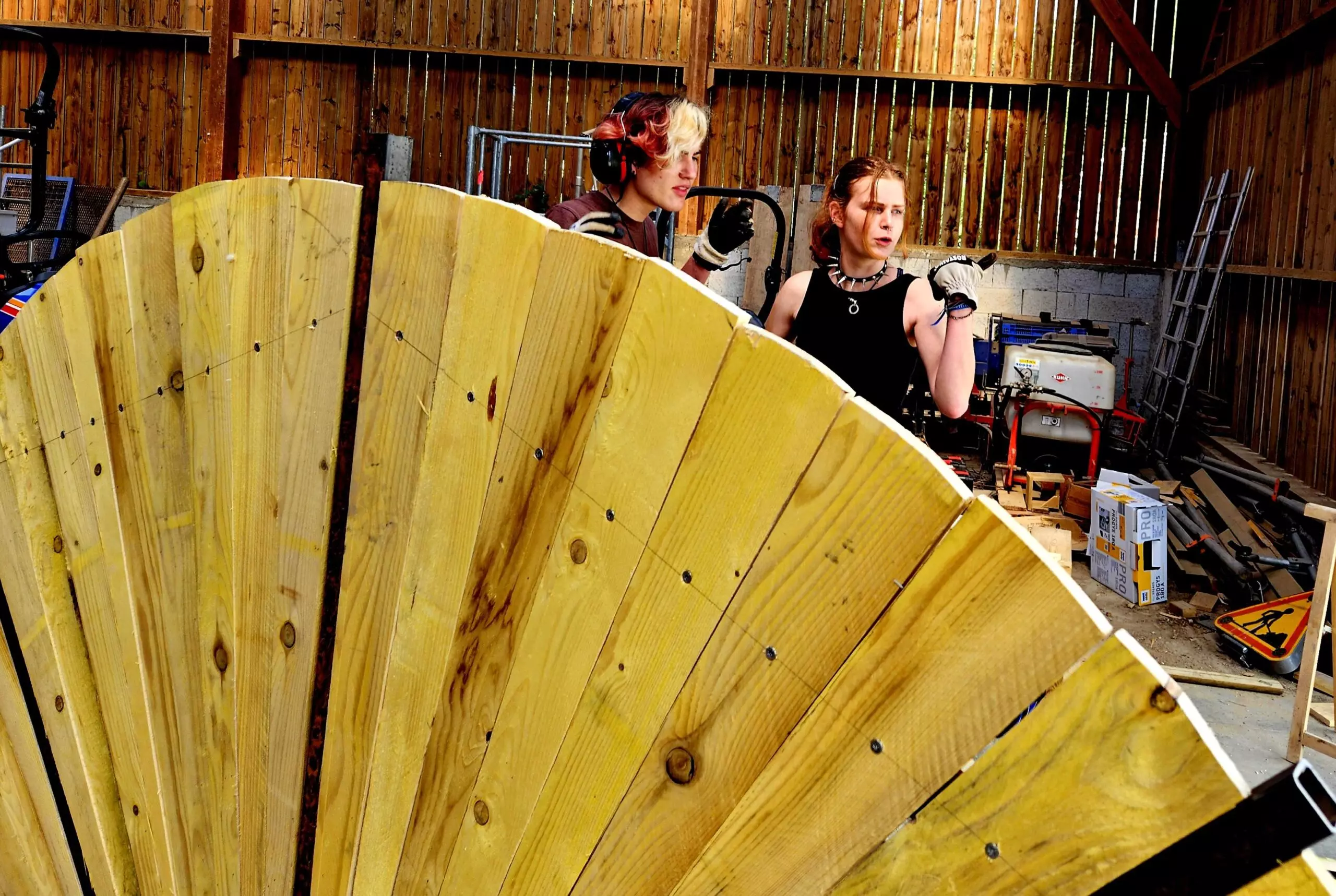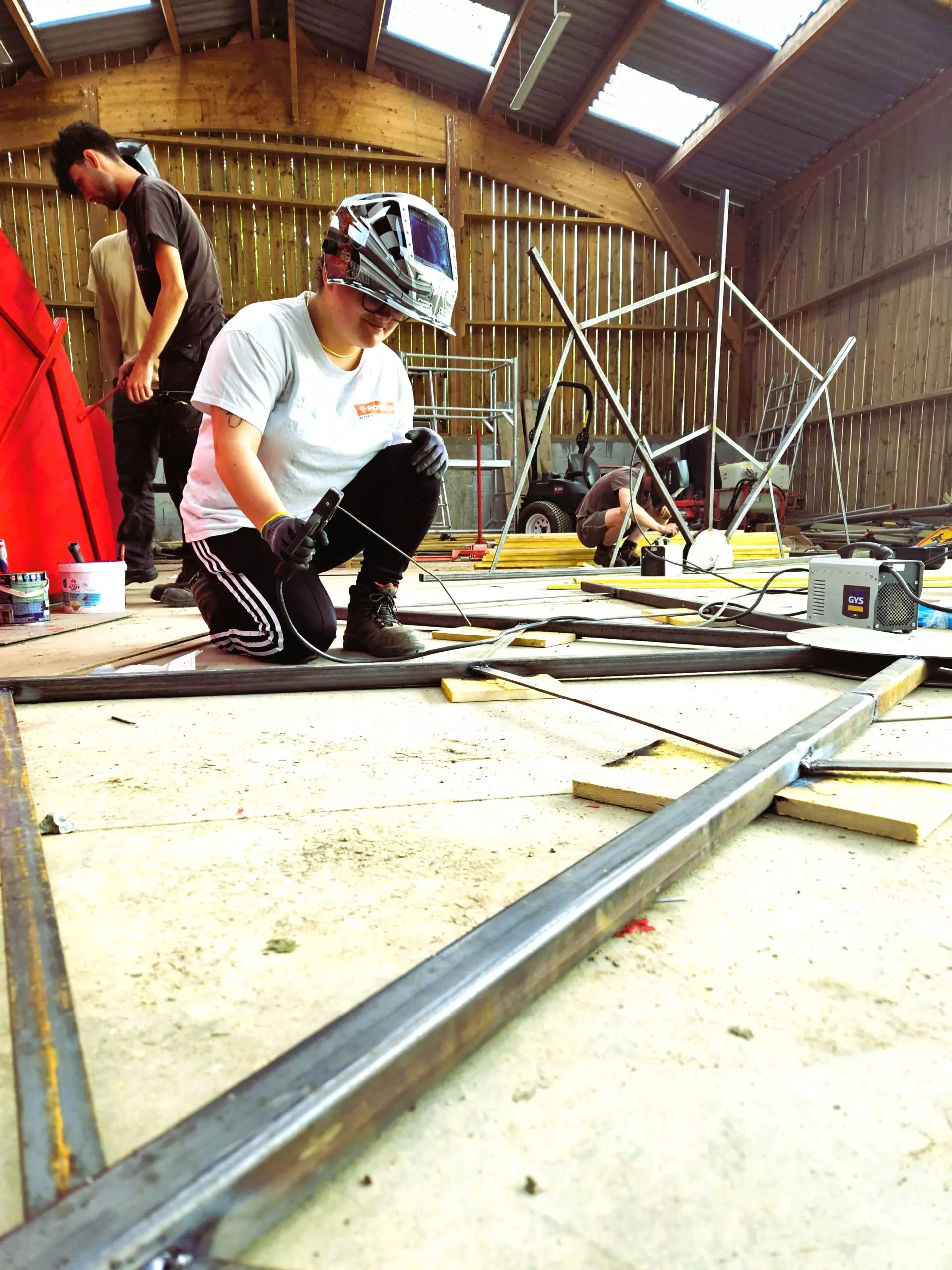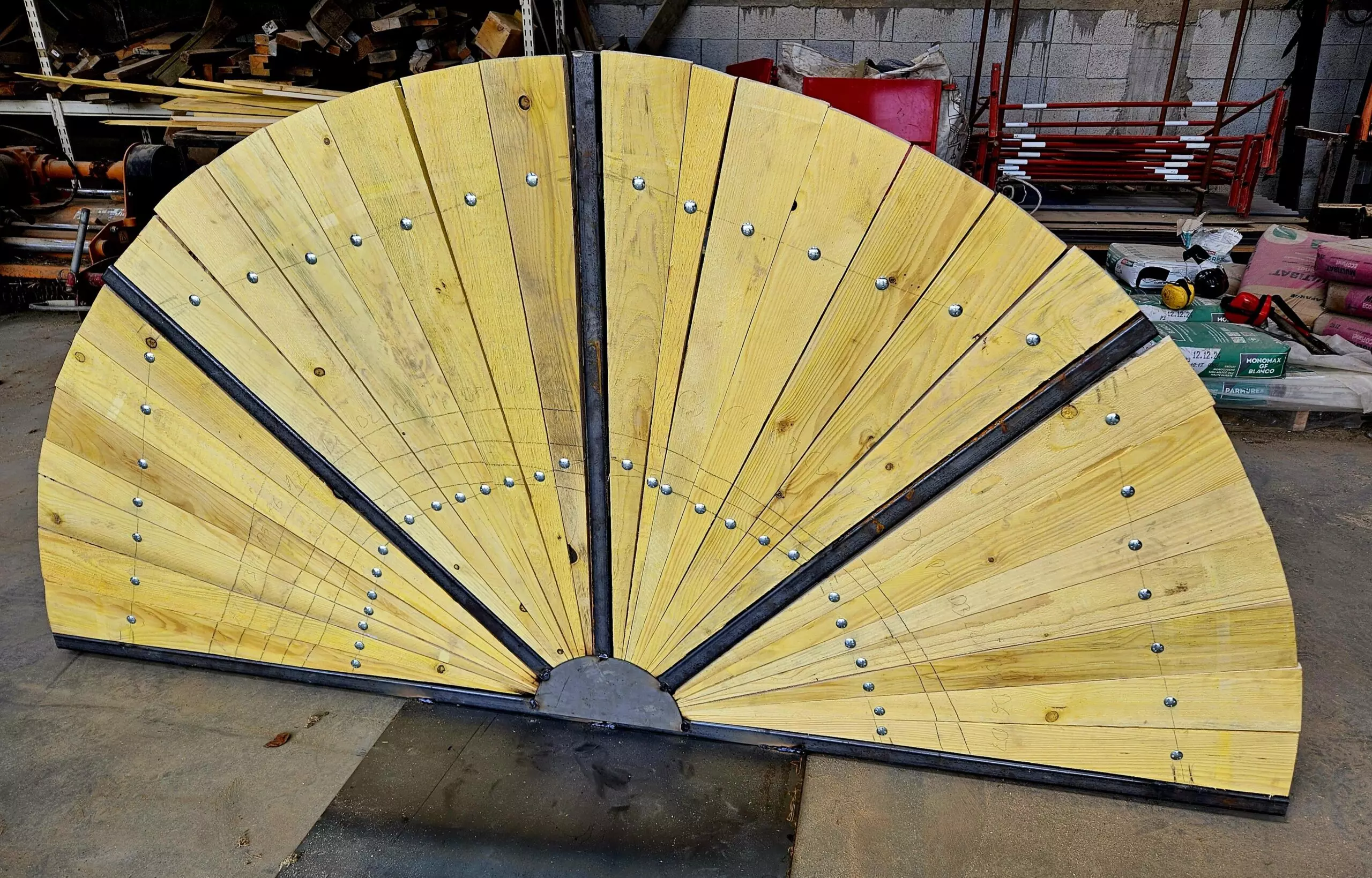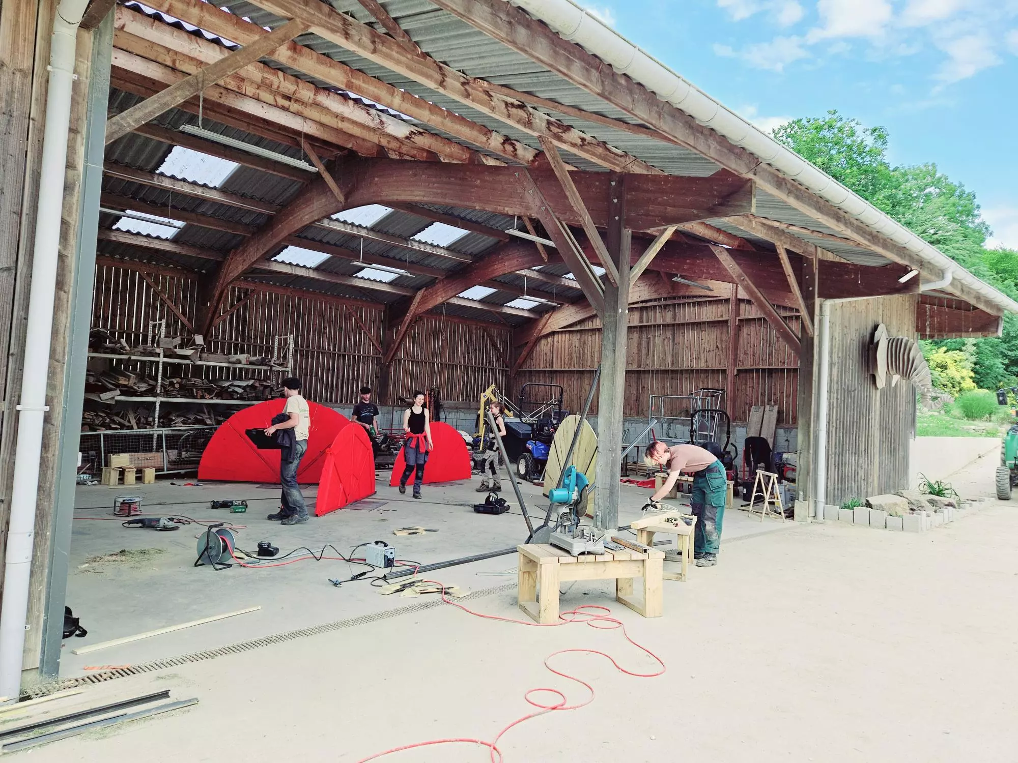 Ainsi, les BTS AP2 ont passé deux journées à préparer les ossatures métalliques, découper en biseau les lames de voliges et peindre en rouge. Du rouge mais pas n’importe quel rouge, un beau rouge coquelicot intense et frais comme le vent qui arrive du pays du soleil levant.