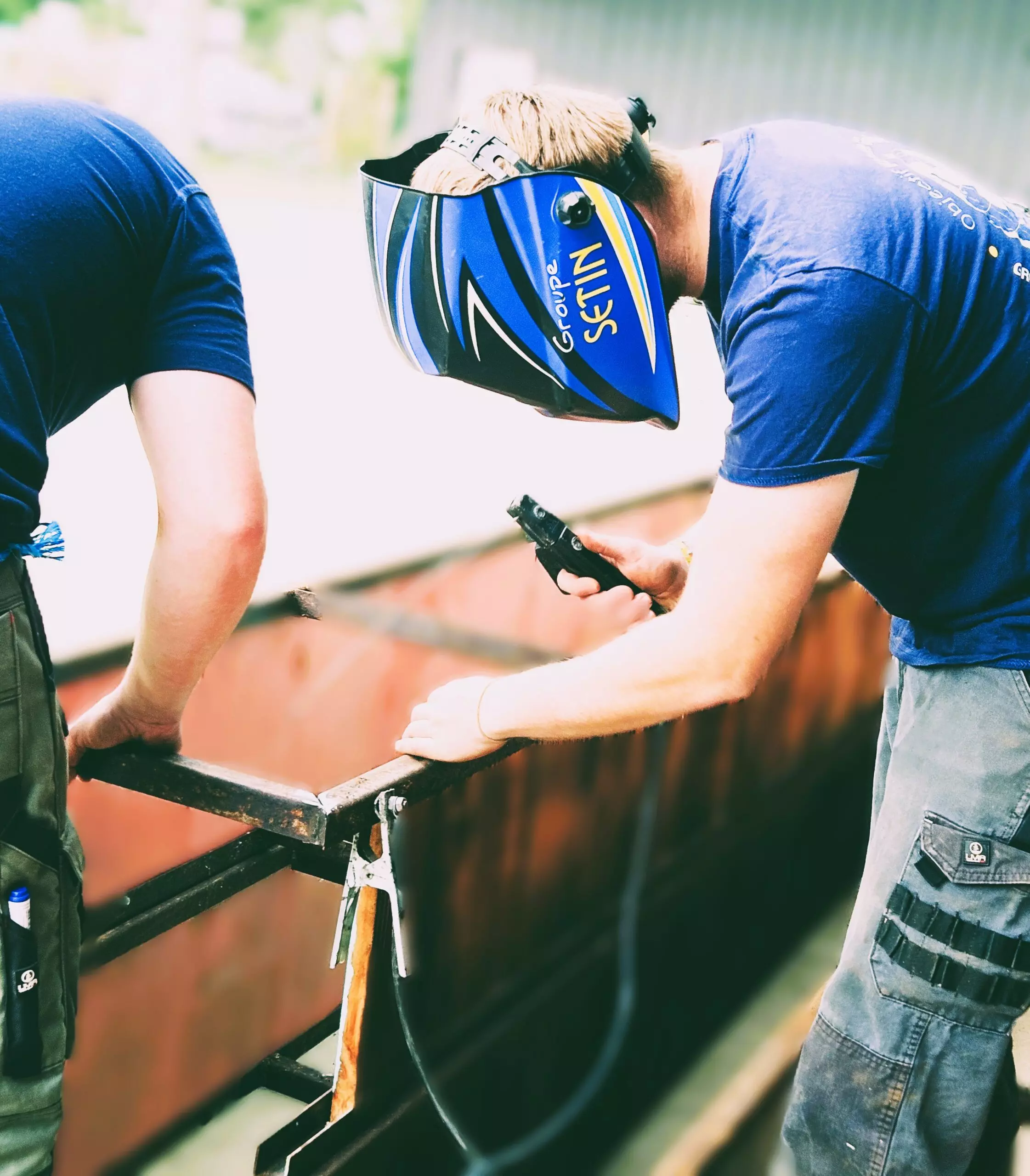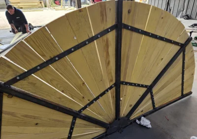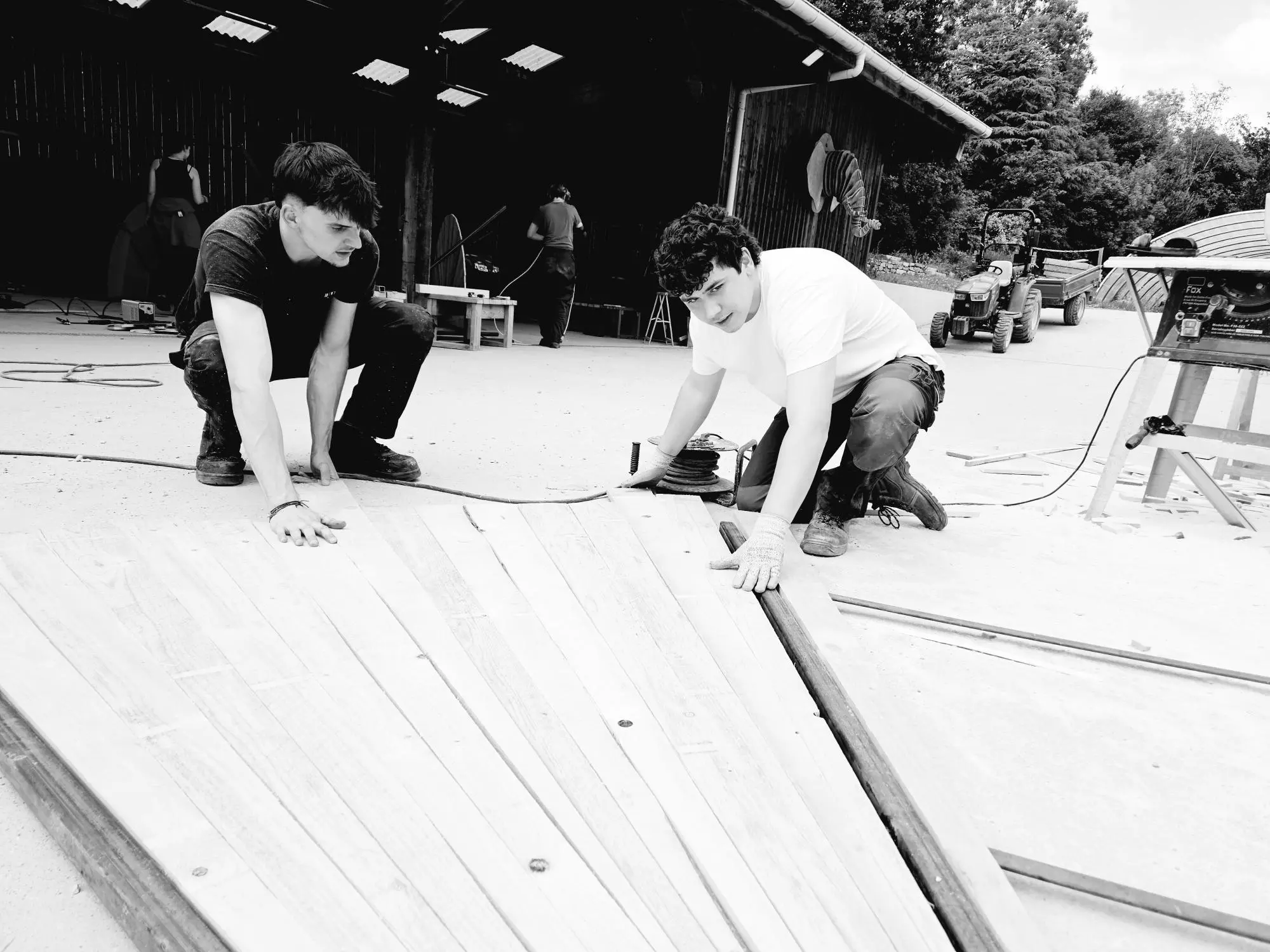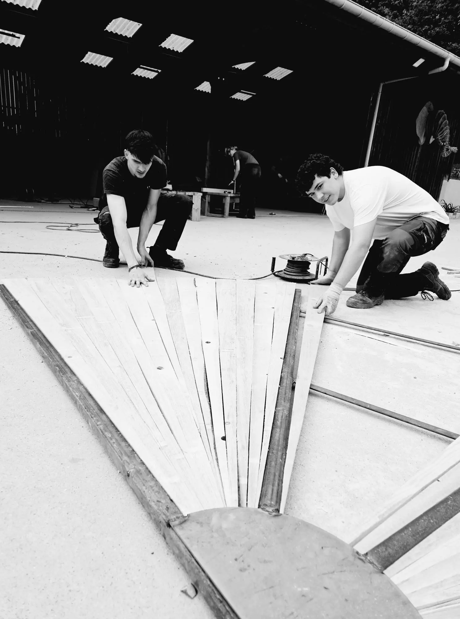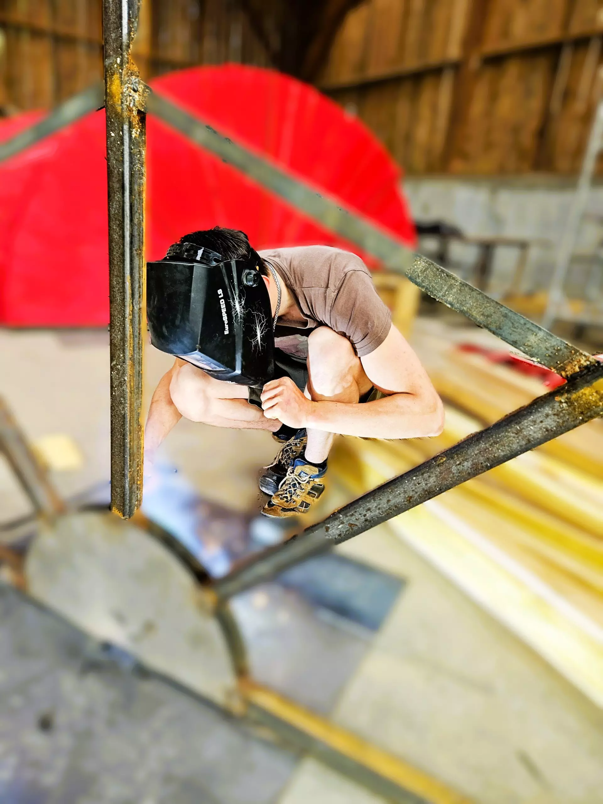 Ainsi, les BTS AP2 ont passé deux journées à préparer les ossatures métalliques, découper en biseau les lames de voliges et peindre en rouge. Du rouge mais pas n’importe quel rouge, un beau rouge coquelicot intense et frais comme le vent qui arrive du pays du soleil levant.