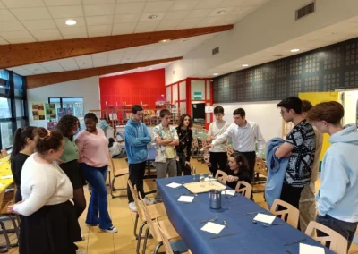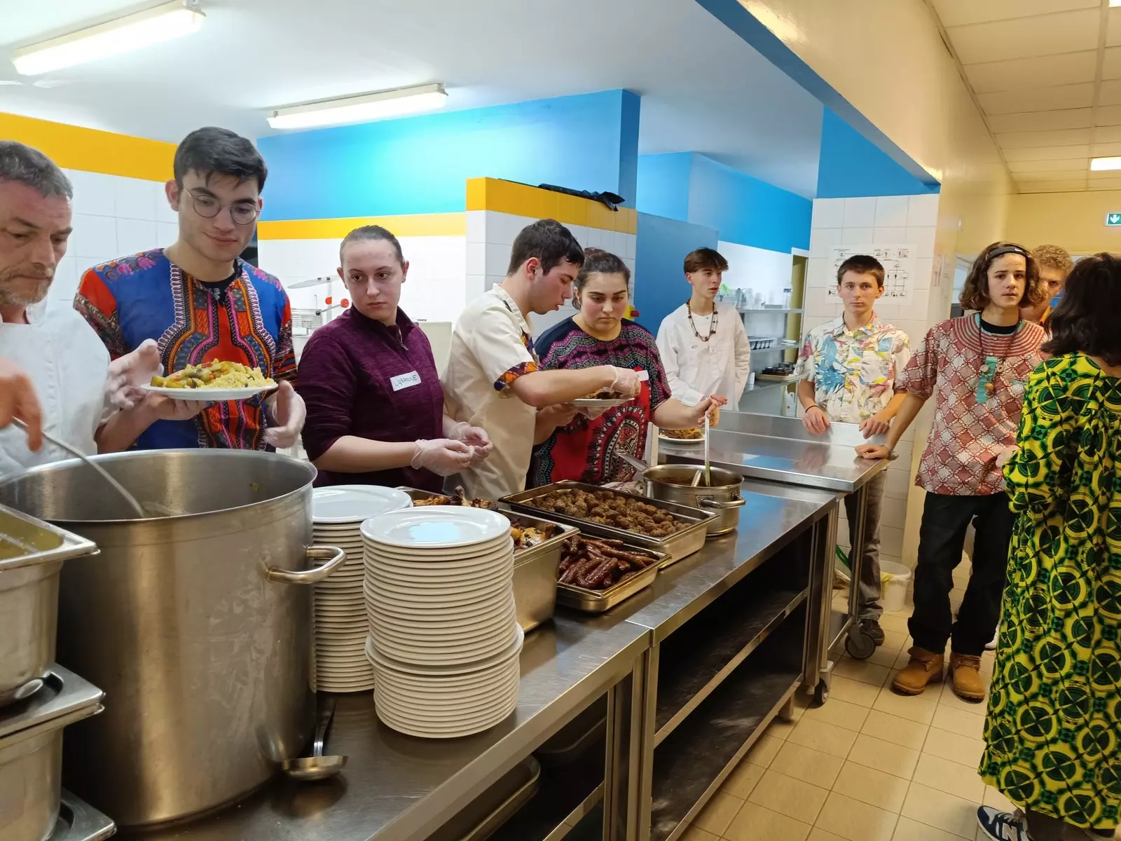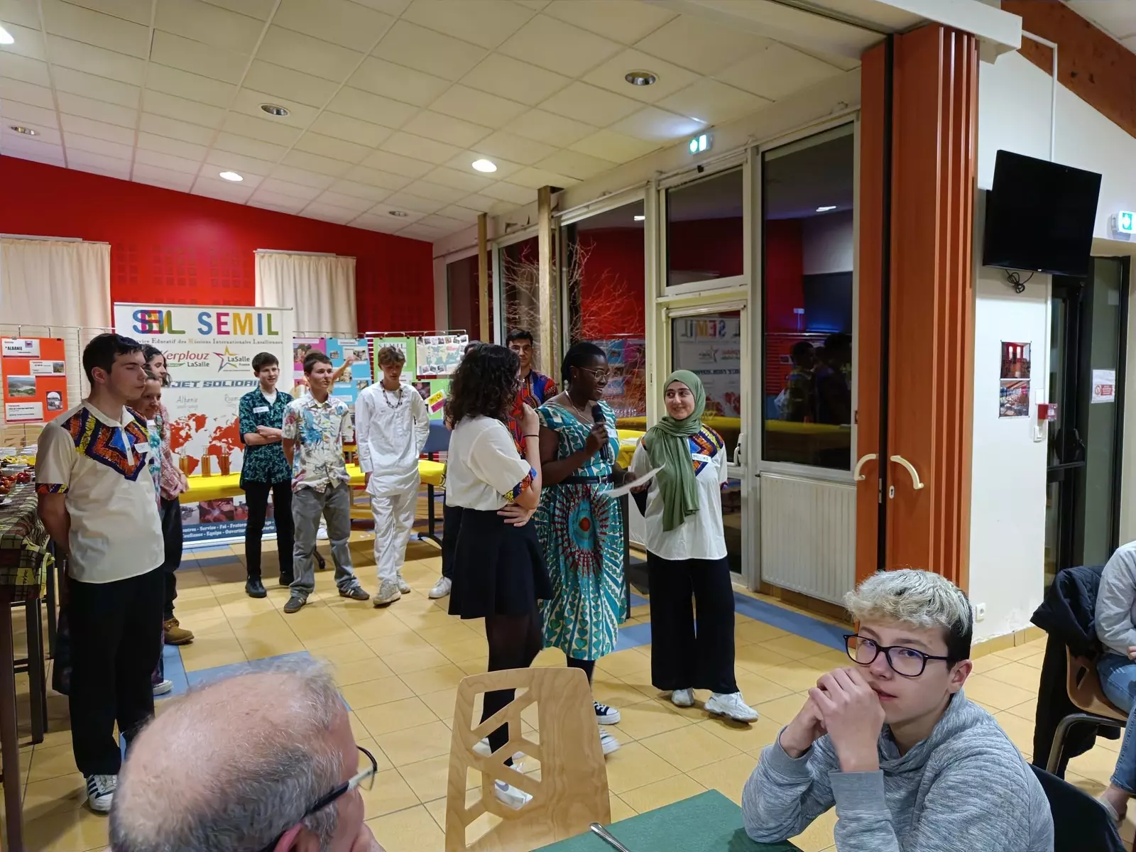 Cette soirée a été organisée pour et avec l’équipe du SEMIL du lycée (Service éducatif de Missions Internationales Lassalliennes), équipe composée de 10 jeunes lycéens engagés (Léa, Lysane, Clément, Enzo, Ewan, Hervé, Rémi, Sid, Ugo et Valentin, lycéens en seconde et première) et leurs accompagnatrices (Marion Bordes, Isabelle Even et Fanny Rolland, enseignantes). Ensemble nous avons assuré la soirée : le service pour les semilliens, l’accueil et l’animation pour notre part.