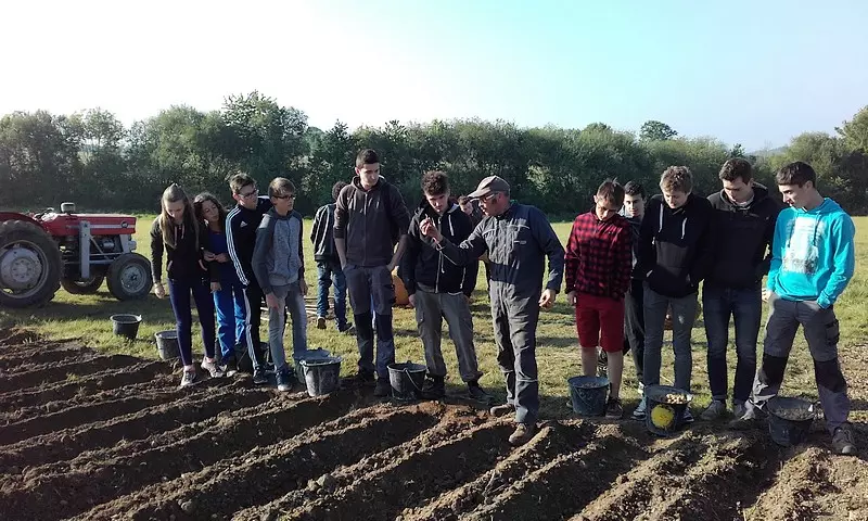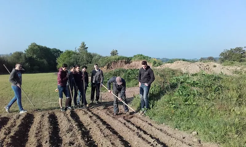 Jeudi 27 avril, les première STAV ont planté (manuellement !!!) 350 kg de pommes de terres sur une parcelle du Lycée (environ 3000 m²). Elles sont destinées à être récoltées (en septembre normalement) au profit des Restos du Coeur, qui, par l’intermédiaire de Mr Denis Lacrampe (Responsable Morbihan), nous ont fourni les plants (Universa et BF15 pour les spécialistes).