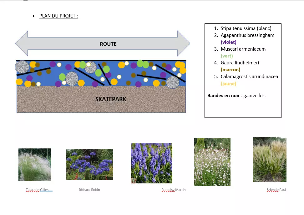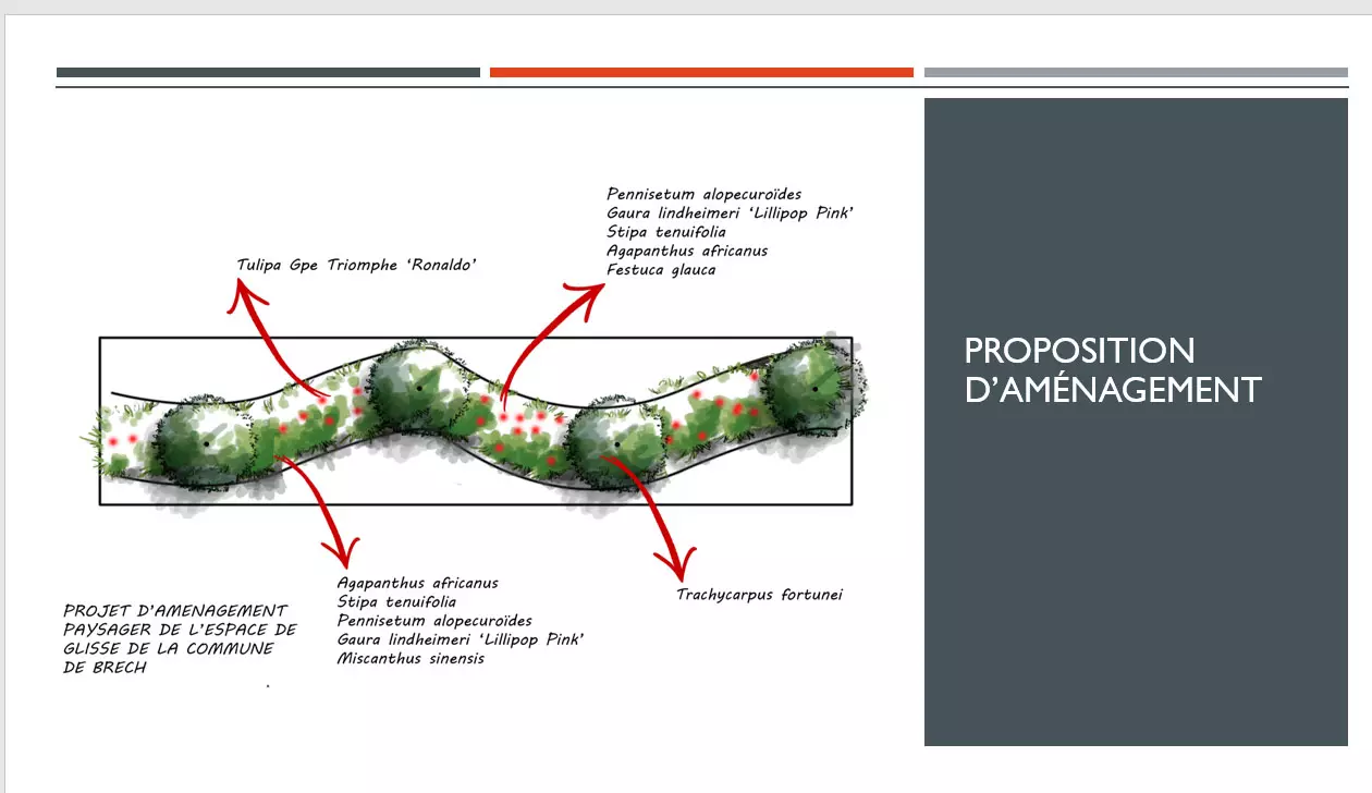 Toujours, dans le cadre de notre collaboration avec la commune et le service espaces verts, nous avons été missionnés pour réfléchir à un aménagement de 100 mètres linéaires qui doit séparer, sécuriser le site tout en le mettant en valeur.