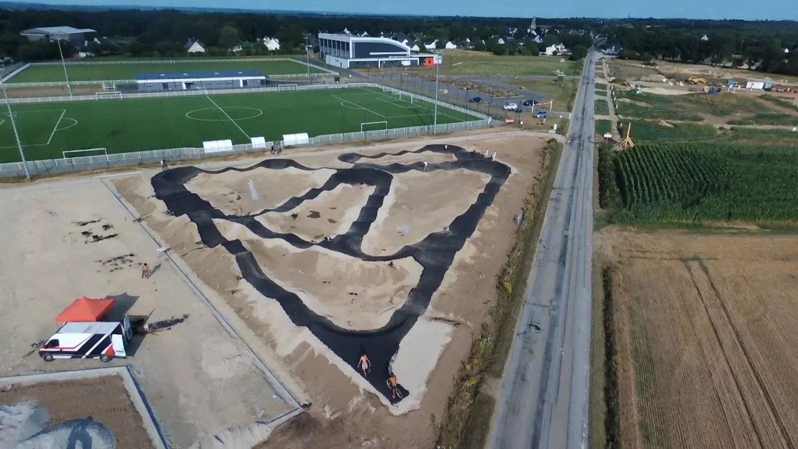 Ce pumptrack, unique en Bretagne, a été conçu et réalisé par la société Vélosolutions. La filiale française qui a travaillé sur ce projet est composée d’une équipe de sportifs qui maîtrisent vraiment son sujet, (notamment Adrien Loron, triple champion du monde de la discipline).