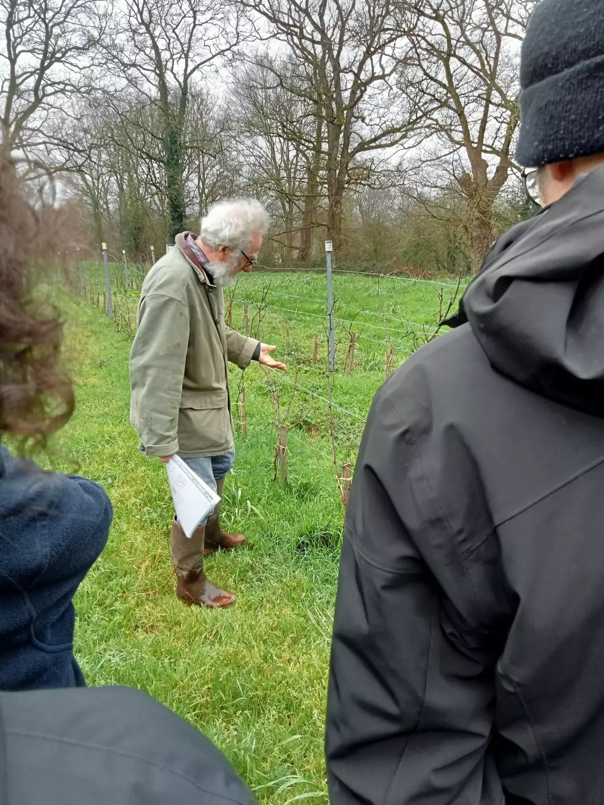 Les stagiaires du BPREA orientation viticole se sont rendus en Ille et Vilaine près de Redon à Bain sur Oust pour apporter leur appui technique au côté d’Aurélien Berthou, formateur du lycée CFA de Kerplouz. Ils sont intervenus en taille de vigne dans la parcelle patrimoniale de M. Robert GORY, membre de l’Association pour la Reconnaissance des Vins de Bretagne (ARVB) qui a lancé l’aventure en plantant 250 pieds de pinot noir sur sa propriété et plus récemment du chenin en 2022. Les membres du groupe BPREA ont pu échanger sur la question d’entretien de la parcelle et la phase de vinification en découvrant le chai.