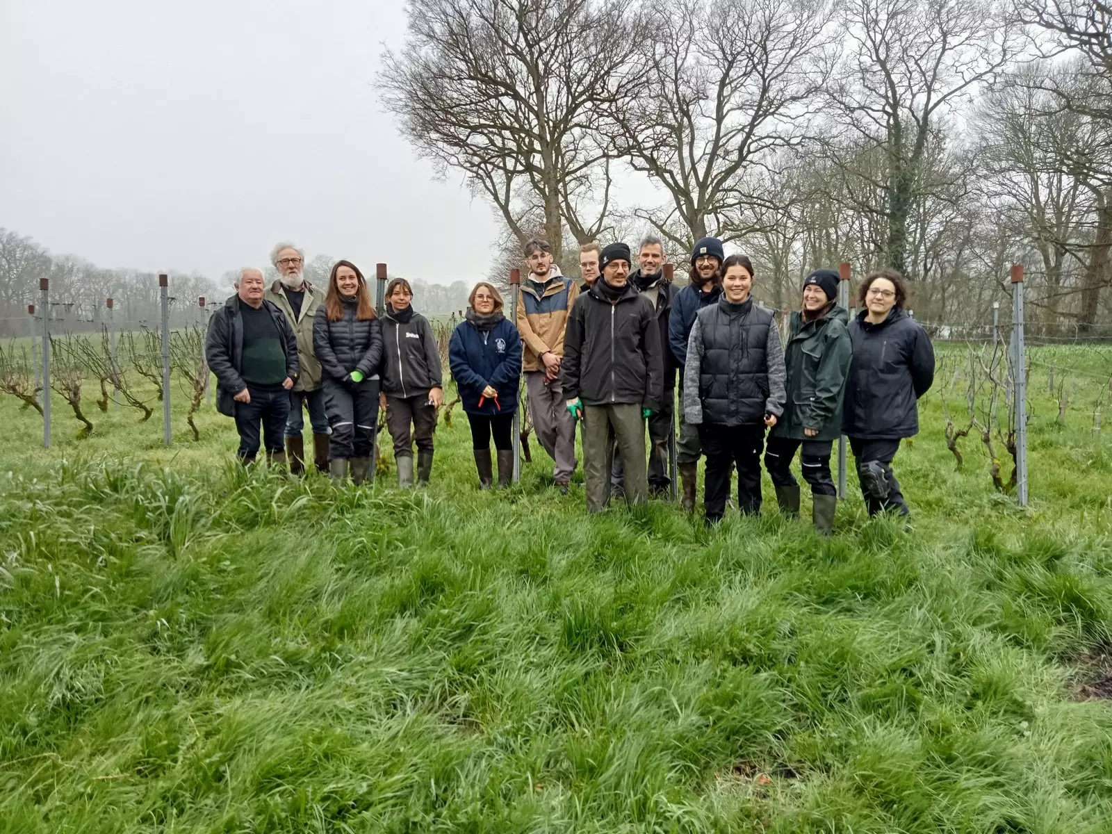 Les stagiaires et apprentis ont pu perfectionner leur technique de taille avant de se rendre à Guer pour une après midi de plantation de pieds de vigne auprès de Jean Charles ALLAIN.